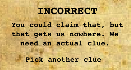 1. Excellent Job as Always! I really liked your Clue section! That was super fun! I had Ace Attorney music playing in my head. 🙂