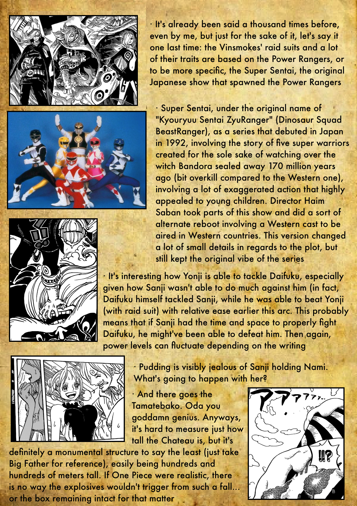But a correction: you said Super Sentai is a show, but it’s actually a genre, with dozens if not hundreds of shows airing since the late 70’s. Oda would have hardly taken inspiration from Kyouryuu Sentai specifically, given that it wasn’t a particularly remarkable show.