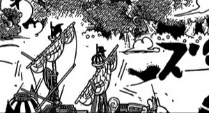 But look at it’s size! It’s easily 5 times taller than Jinbe, making it a whooping 10-15m tall!! And hey, in the background, you can see Perospero crafting it with his cane!