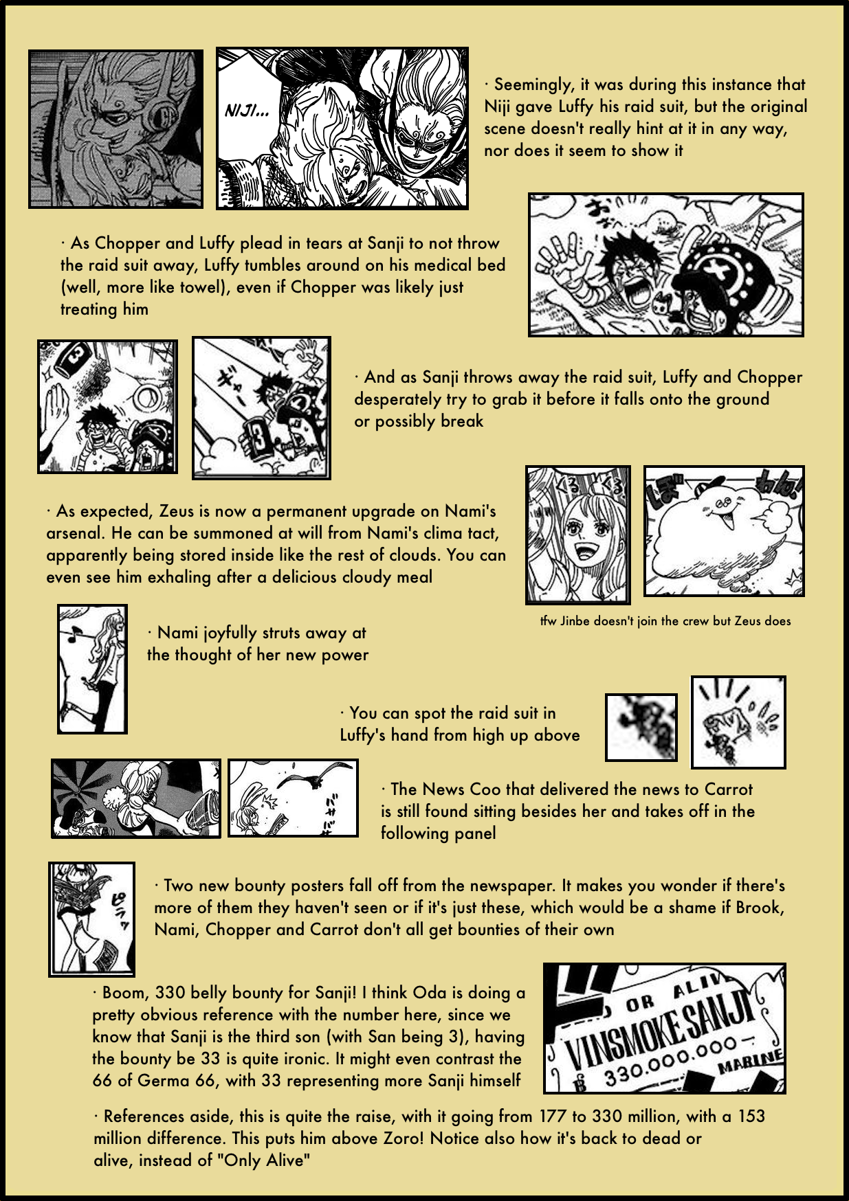 You forgot to mention that the raid suit possibly only works with Sanji’s genetics