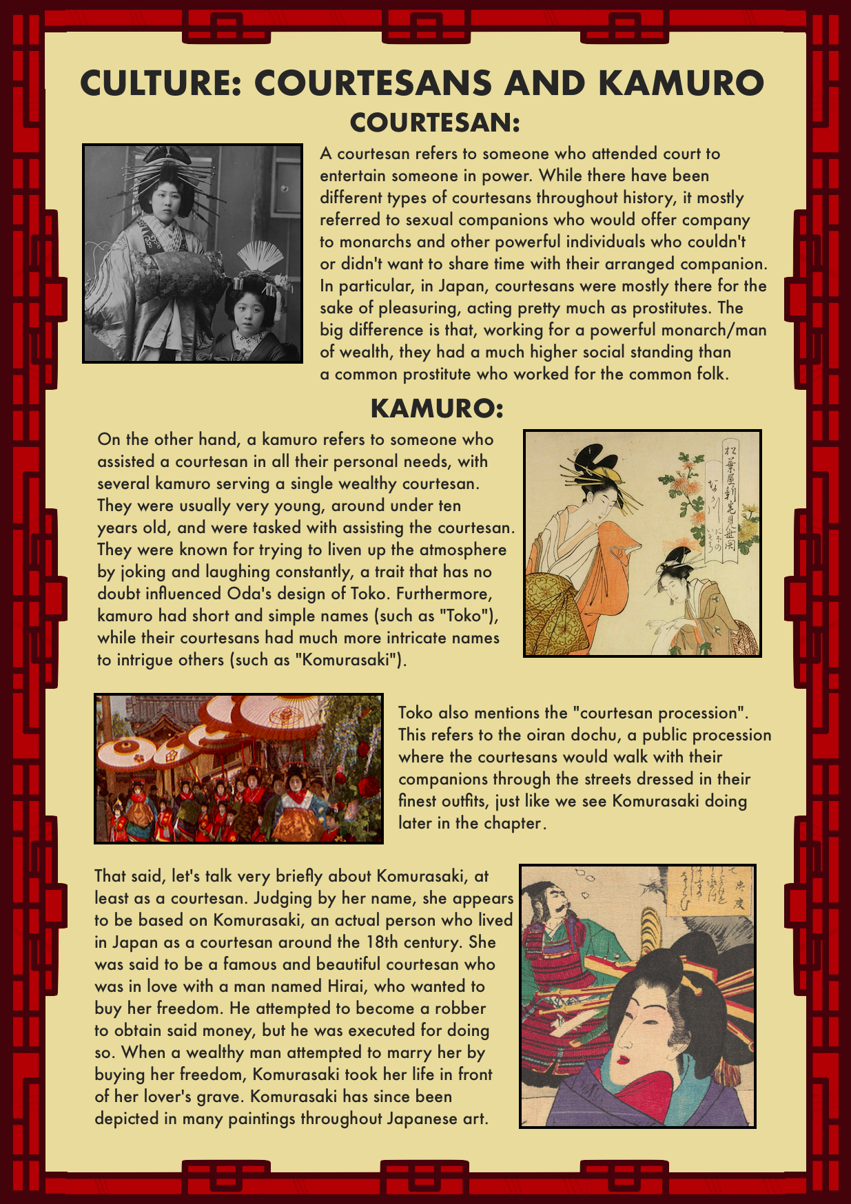 Para continuar con la referencia a Momotaro aún nos falta un faisán, la silueta en el vestido de Komurasaki es un faisán. ¿Podrá ser esto una pista?