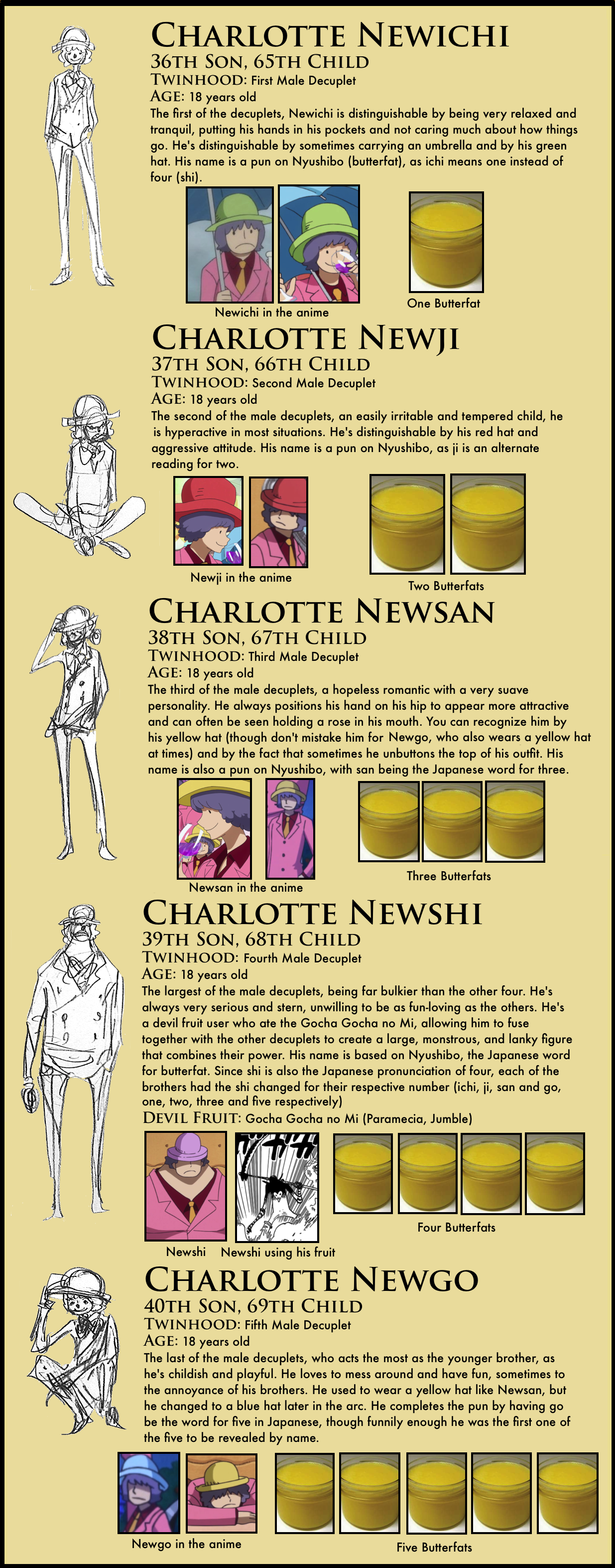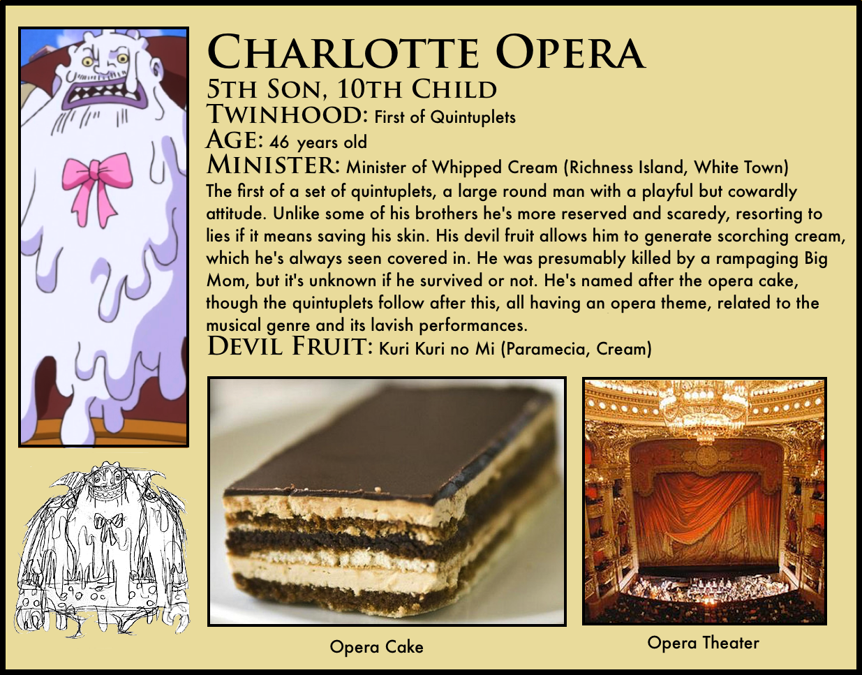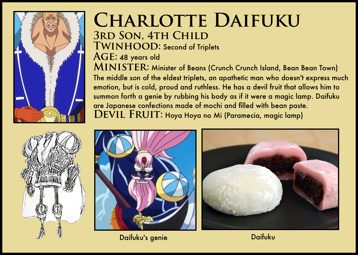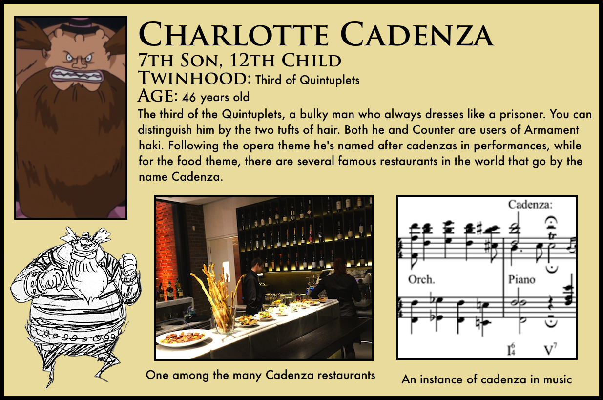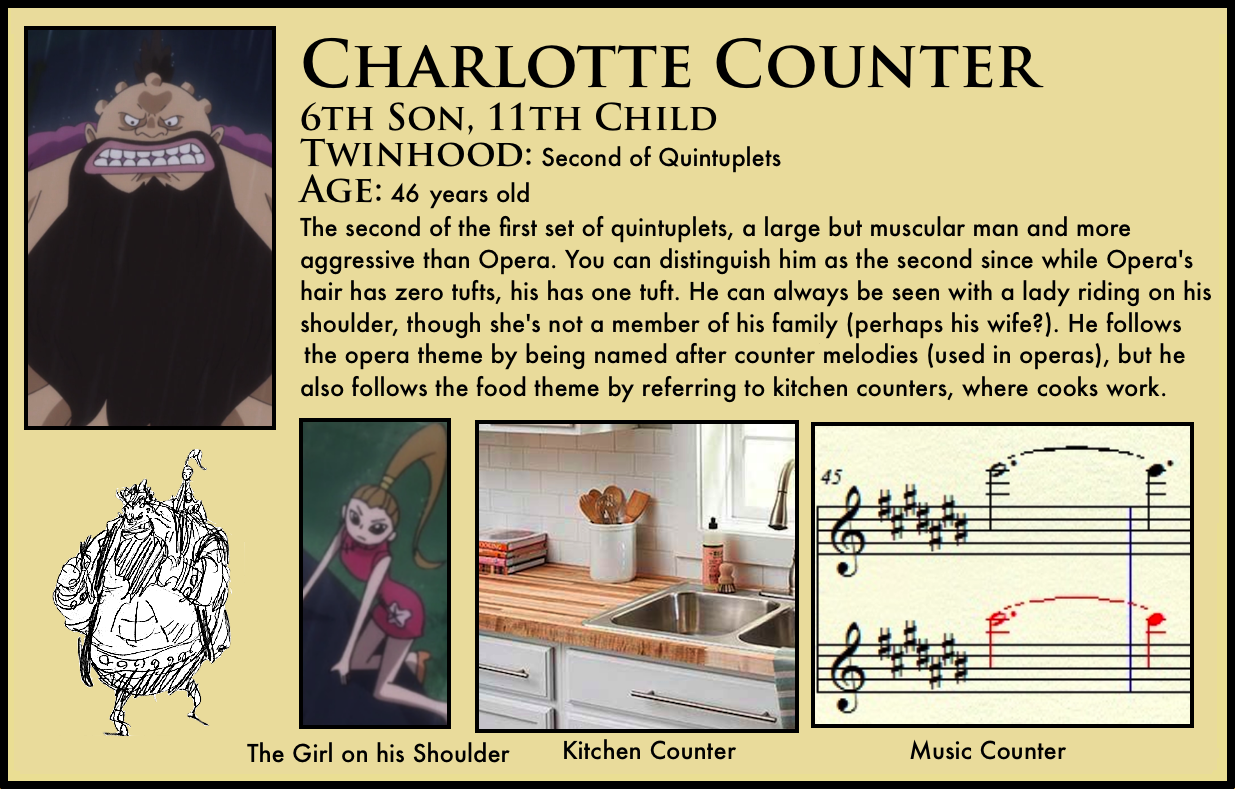 4. I just realized that the Opera quintuplets (born in September) are only about 5 months older than the Cracker triplets (born in February next year). Now I’m not ruling out Linlin having some sort of super birthing powers (it would explain a lot), but I thought it was interesting to point out.