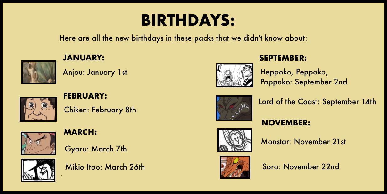 So as you might recall, last September I posted the first volume of the Vivre Card packs, being the initial starter pack. Back then, still being new to the concept, I used a different format and I didn’t really go much in depth about the character’s descriptions since none of us really thought there was anything important hidden in there back then. However, now knowing that there might’ve been some important info in there, I decided to go back and retranslate everything and putting it in the new format, so even if you did read the first pack back then, I encourage reading this one as well, as there is a lot of new info!