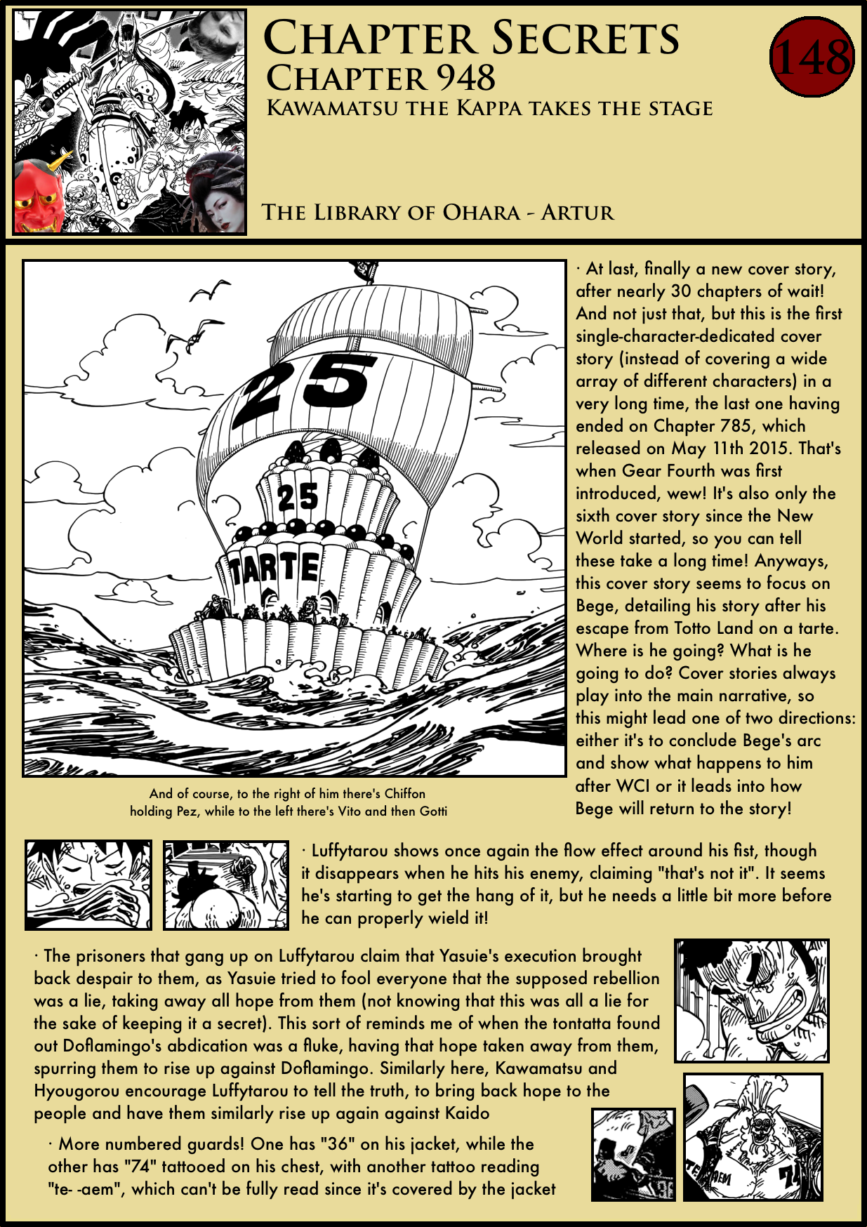 What I am surprised by on this reread is you still guessing he’s a mink? I mean water creature, webbed fingers, was fishman just not on your radar at all? The minks are all mammals. I know, it’s Wano, but the minks aren’t native either