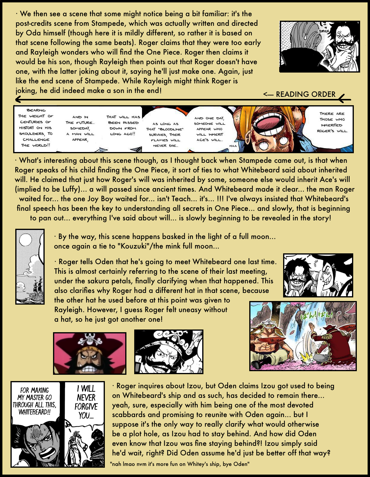 So Roger’s will was from ages ago, the same as Ace’s will… and the same as Luffy’s will. Since Roger mentioned that he would’ve liked to meet Joy Boy… it really shouldn’t be a surprise that Luffy is Joy Boy and that he will fulfill his promise with the help of Wano, Poseidon an whichever other nice details Oda has put there for us unnoticed until now.