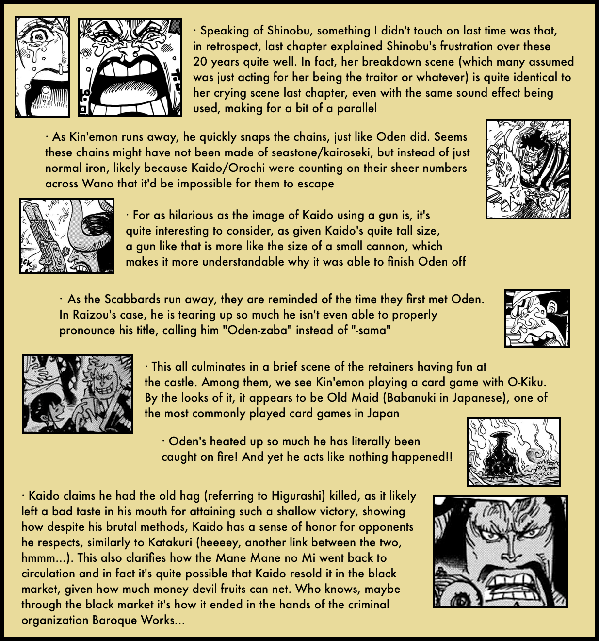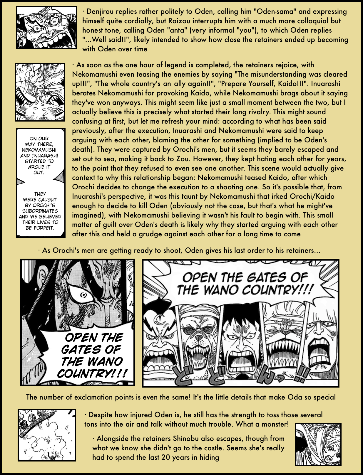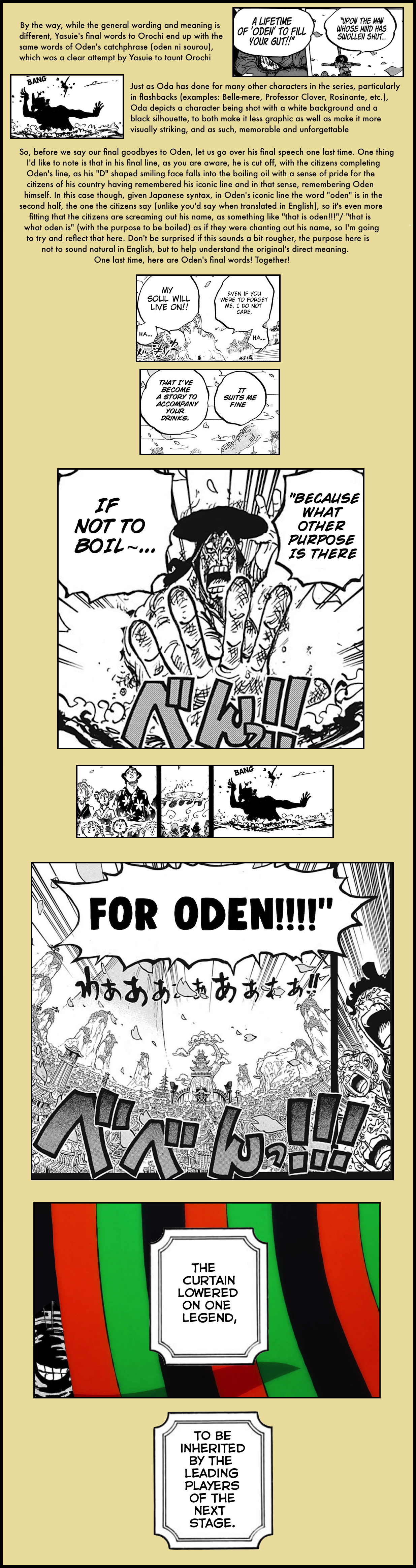 When reading the chapter I was moved but not as much as I expected from Oda, who is usually so good at bringing out my emotions. I now understand it was because I didn’t get the subtleties of the wording in the translation! Thank you for taking the time to fully explain it–now the full feeling of the end of the Legendary Oden has finally hit me! :sob: