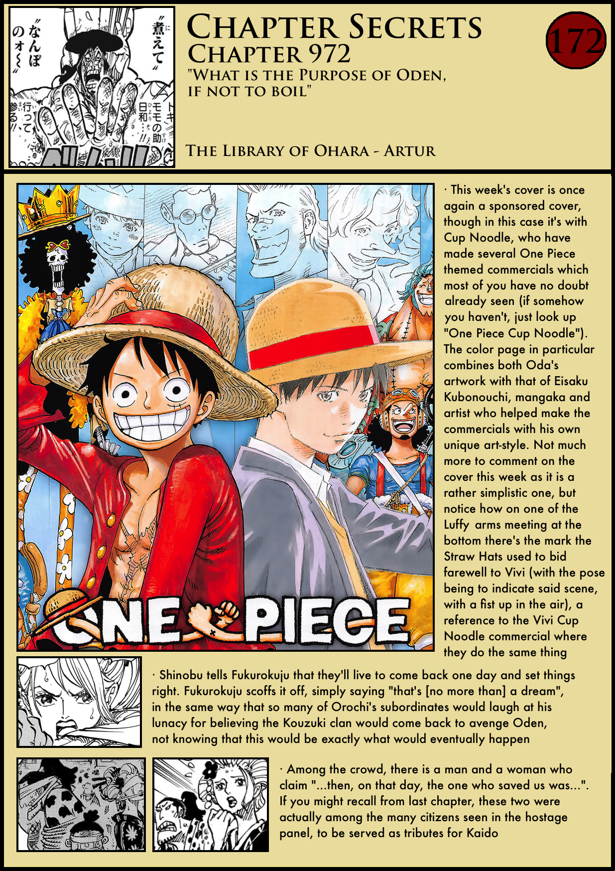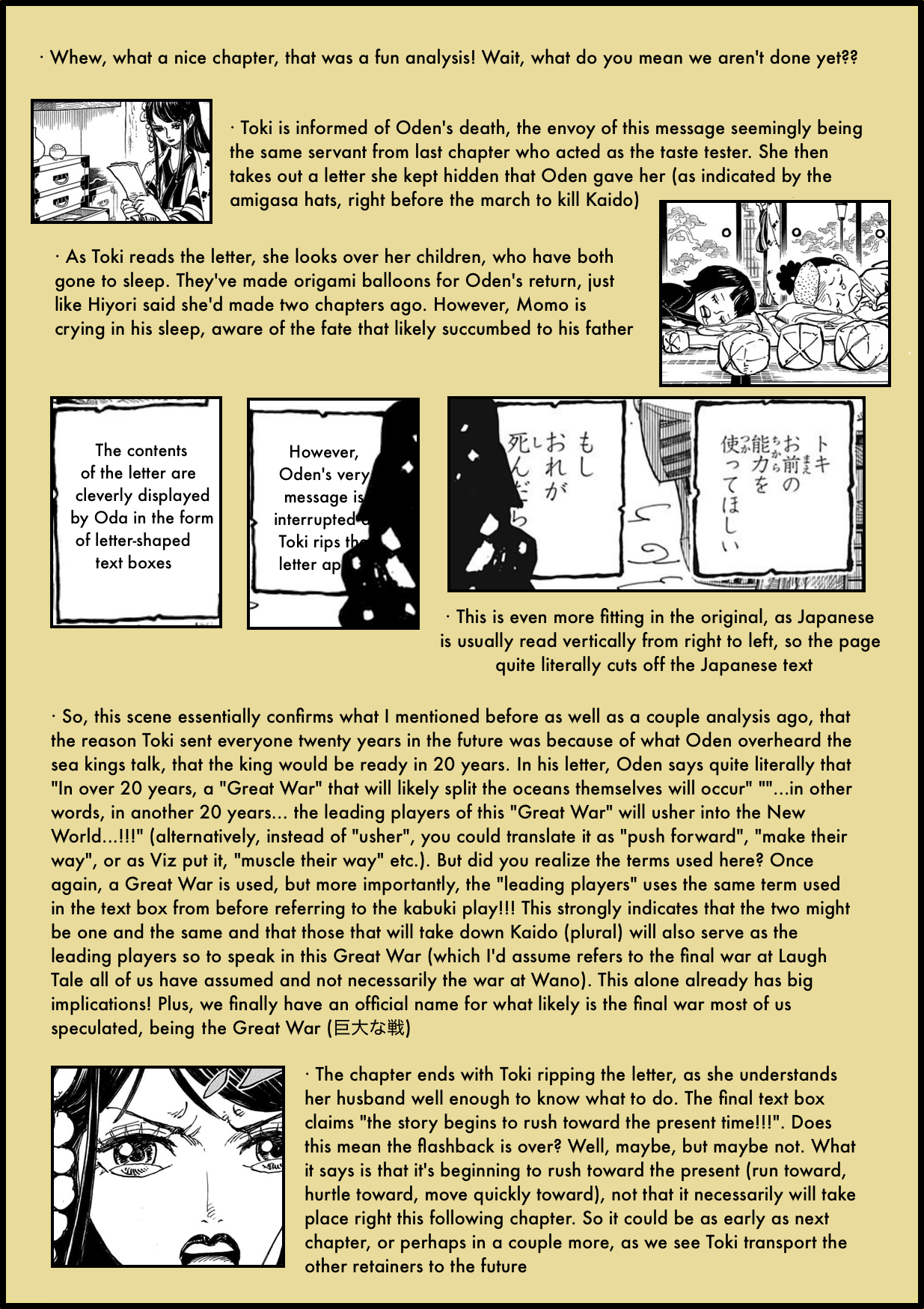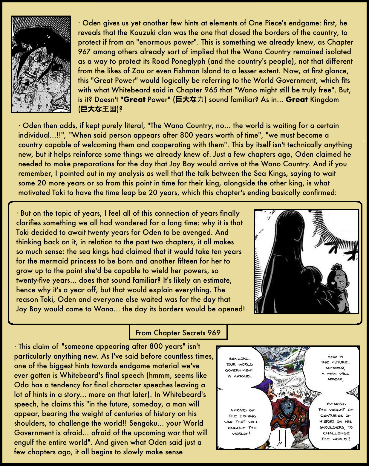 When reading the chapter I was moved but not as much as I expected from Oda, who is usually so good at bringing out my emotions. I now understand it was because I didn’t get the subtleties of the wording in the translation! Thank you for taking the time to fully explain it–now the full feeling of the end of the Legendary Oden has finally hit me! :sob: