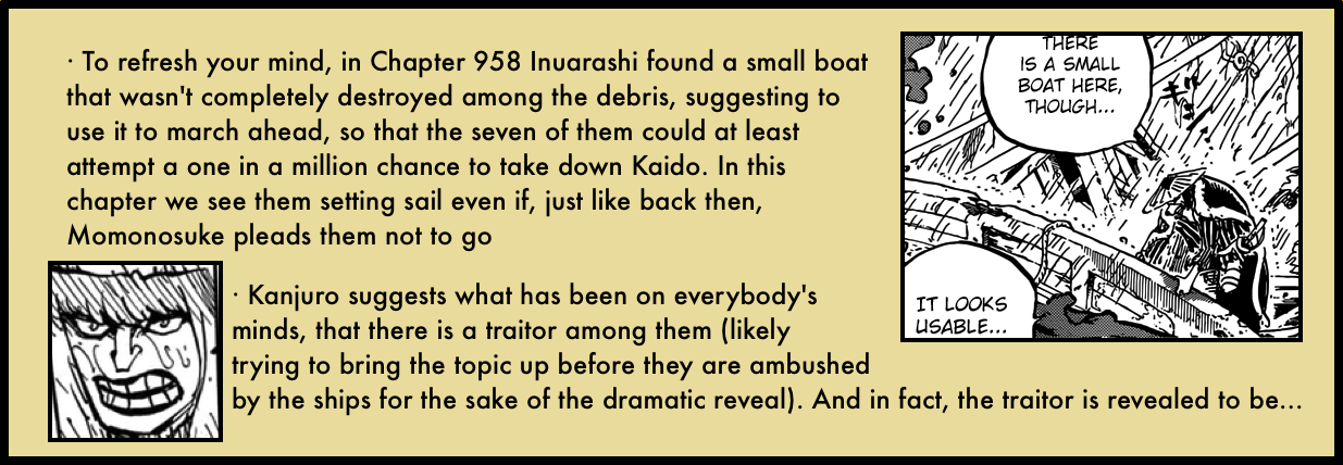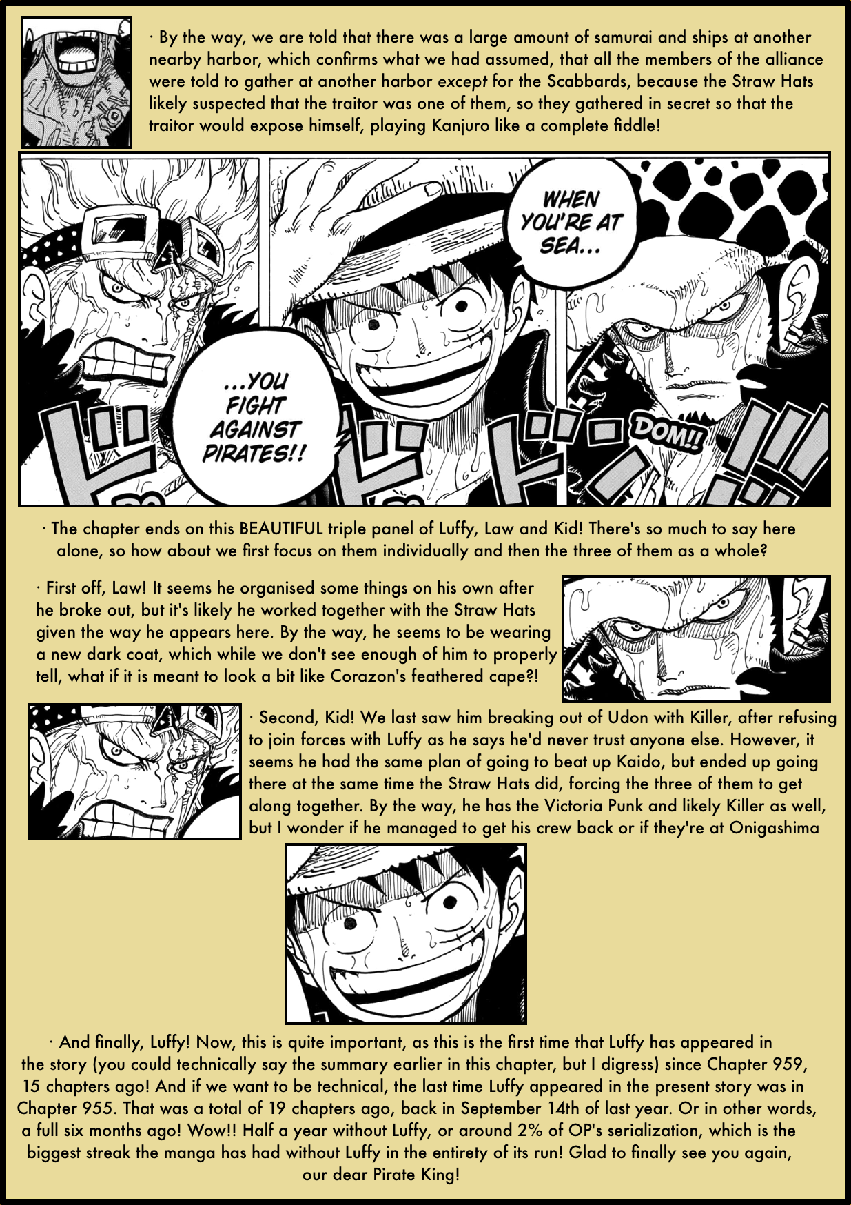 Great analisys, Arthur. I didn’t rebember about Law distant behavior before the flashback, but now i bet that the guy who save him from the prison in the chapther 954 was Denjiro and this explain “the plan C”. Do you agree?