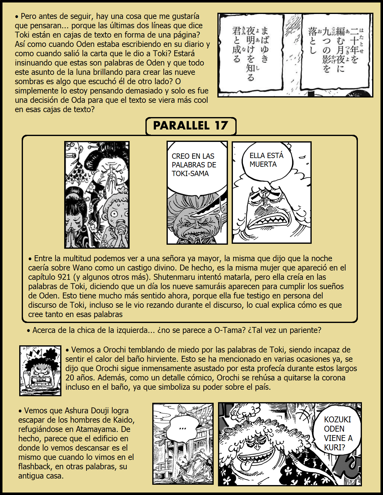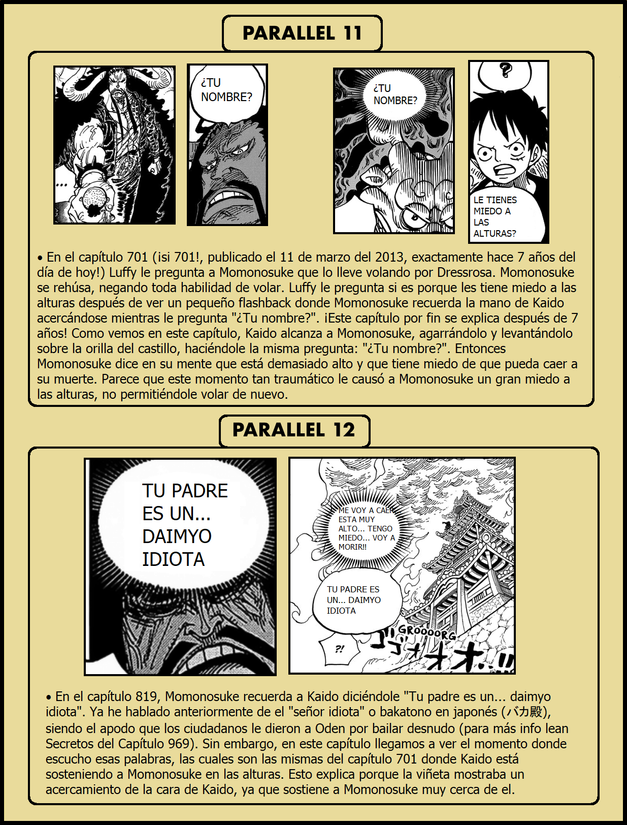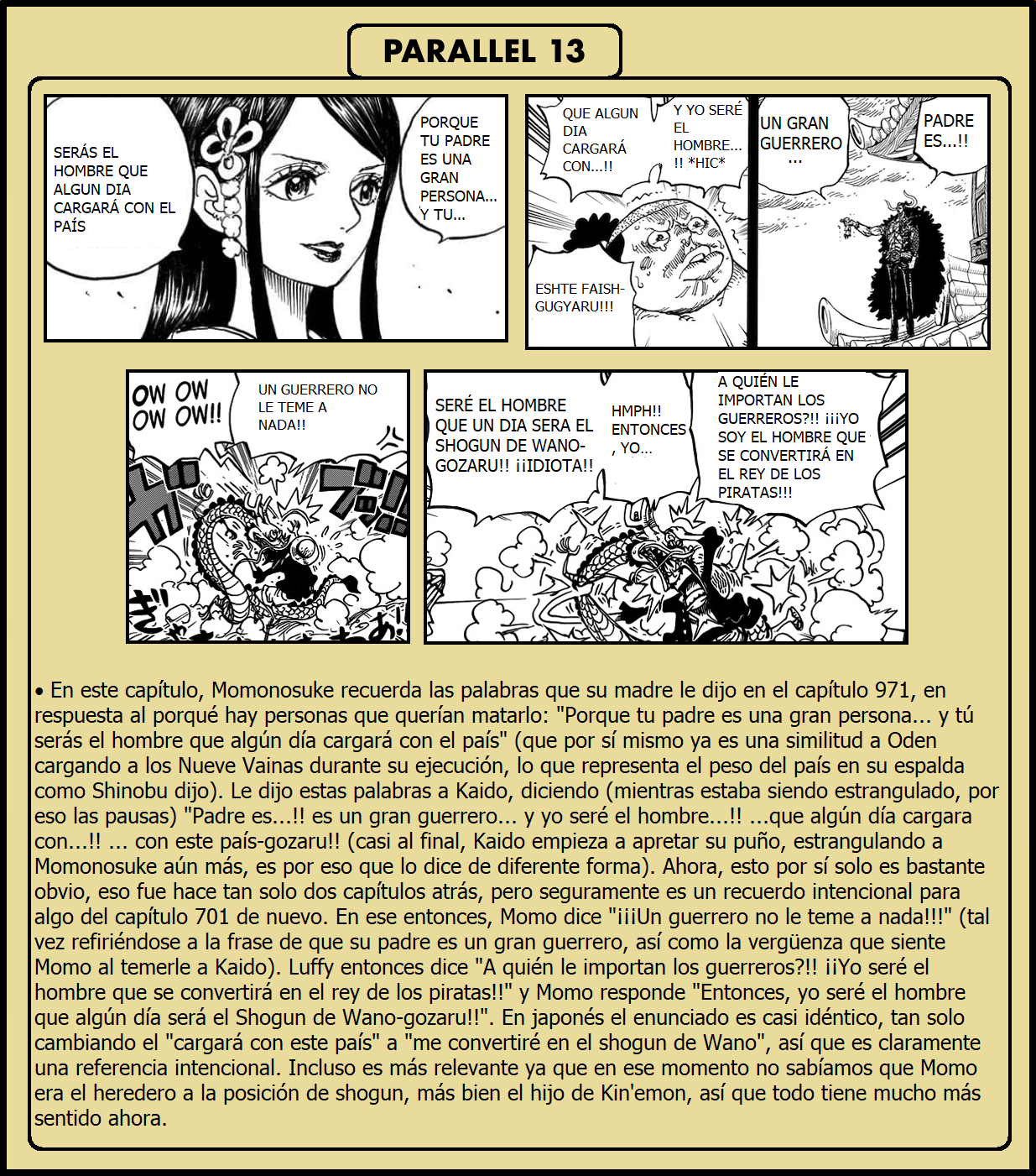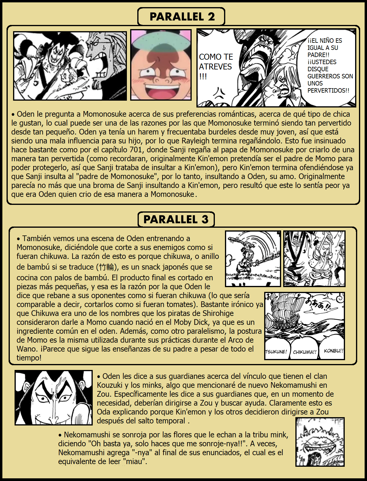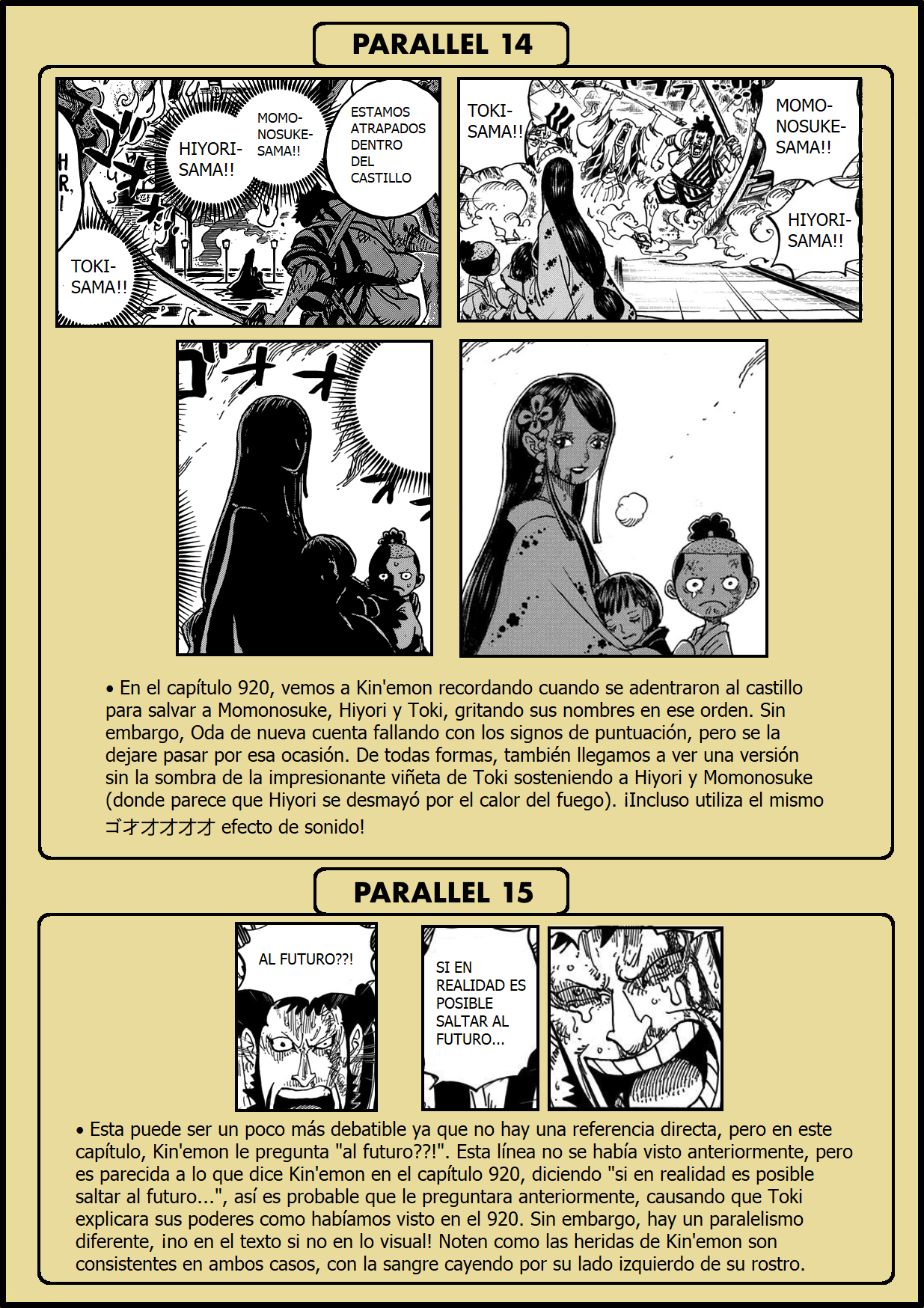 Uff! Justo cuando pensaba que iba a tener una semana de análisis ligera, empiezas a darte cuenta la inmensa cantidad de información que tiene este capitulo! Así es, este es otro caso de análisis monstruoso, como la cantidad que Oda planeo de forma adelantada una y otra vez es increíble. El tema de este capitulo serán “paralelos” (parallels) y créanme, verán muchos de ellos! He estado analizándolo desde que salio el capitulo legalmente sin dormir mucho, pero por fin esta completo! COMENCEMOS!