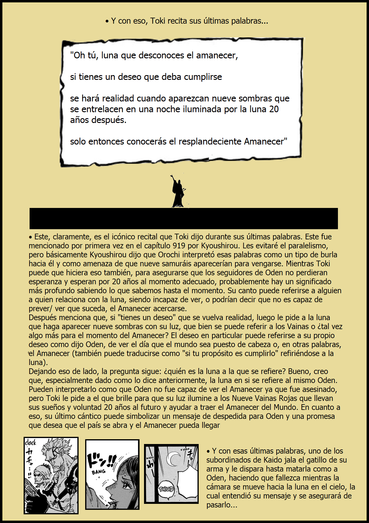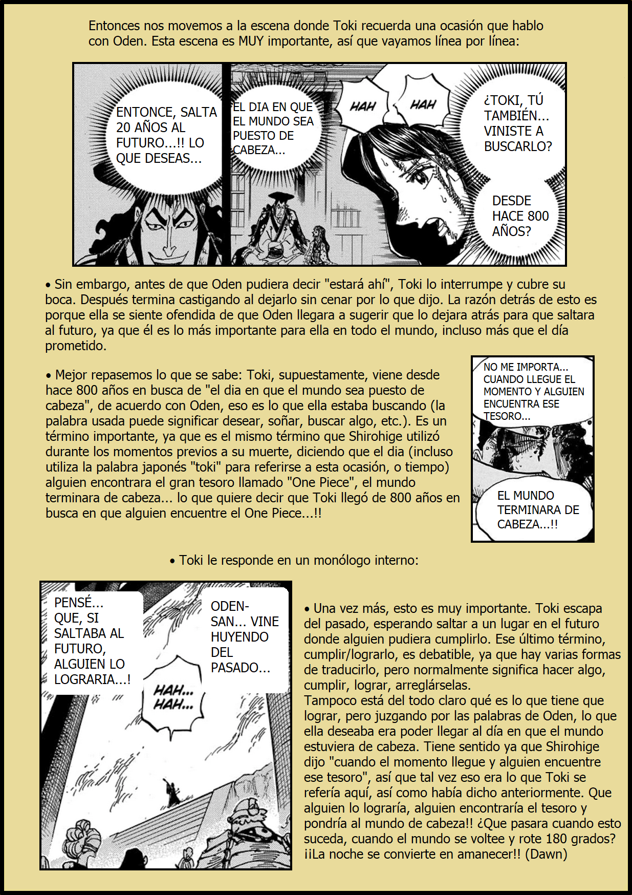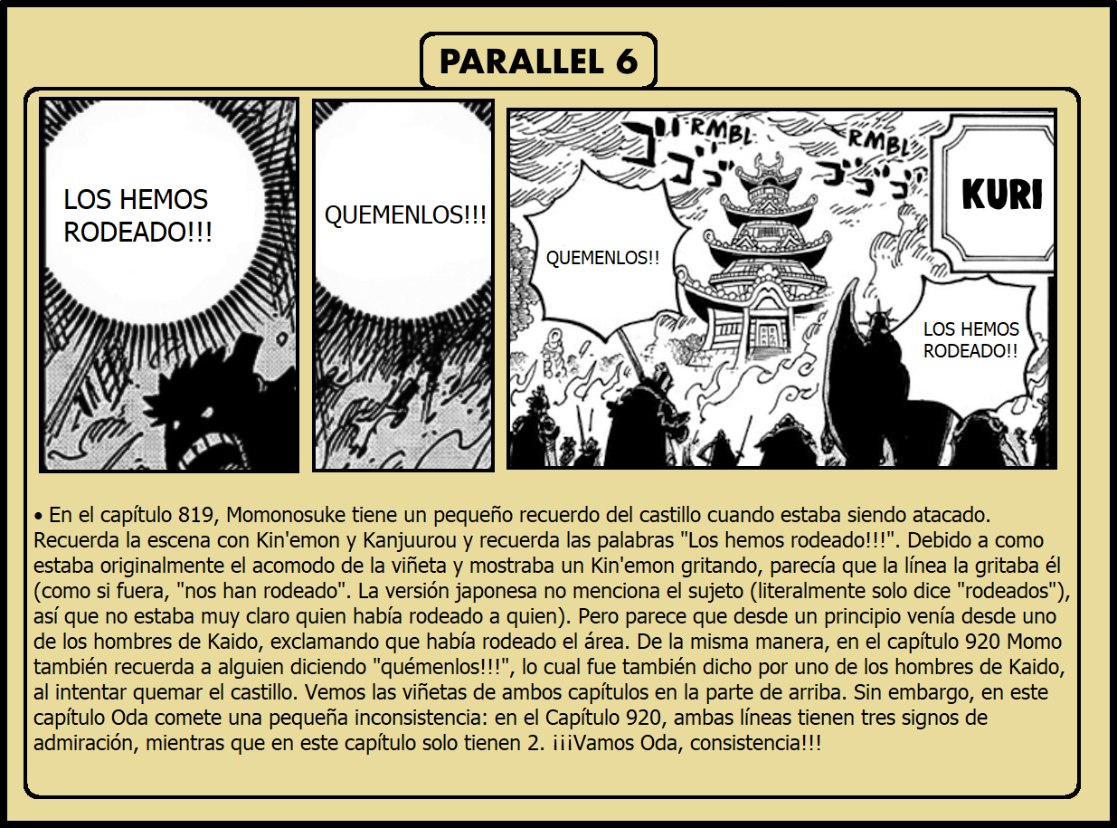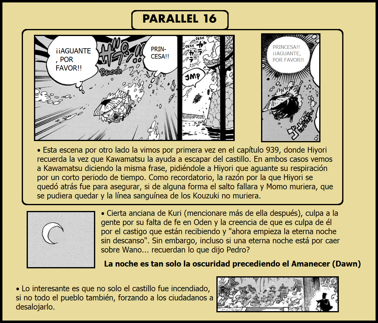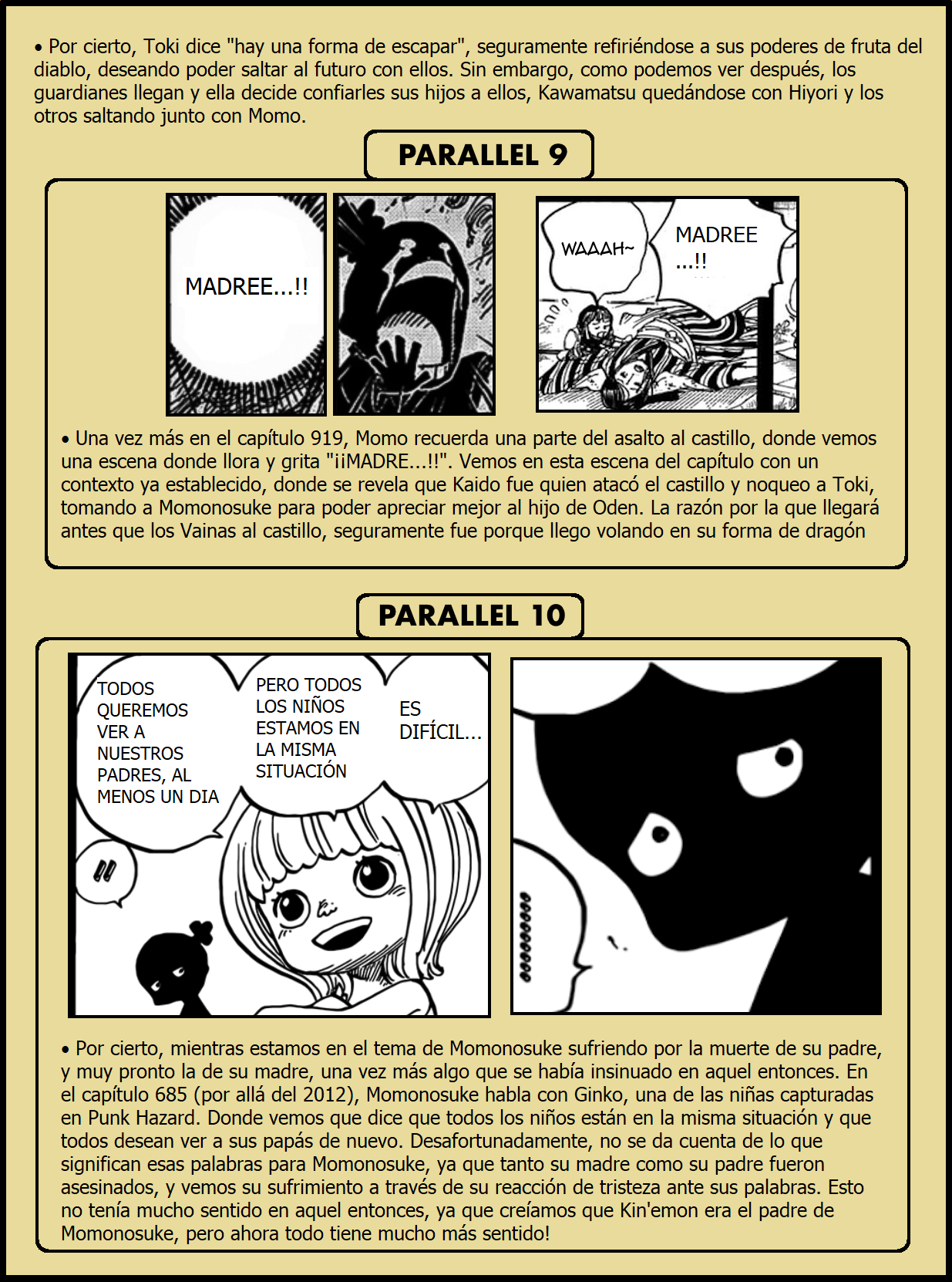 Uff! Justo cuando pensaba que iba a tener una semana de análisis ligera, empiezas a darte cuenta la inmensa cantidad de información que tiene este capitulo! Así es, este es otro caso de análisis monstruoso, como la cantidad que Oda planeo de forma adelantada una y otra vez es increíble. El tema de este capitulo serán “paralelos” (parallels) y créanme, verán muchos de ellos! He estado analizándolo desde que salio el capitulo legalmente sin dormir mucho, pero por fin esta completo! COMENCEMOS!