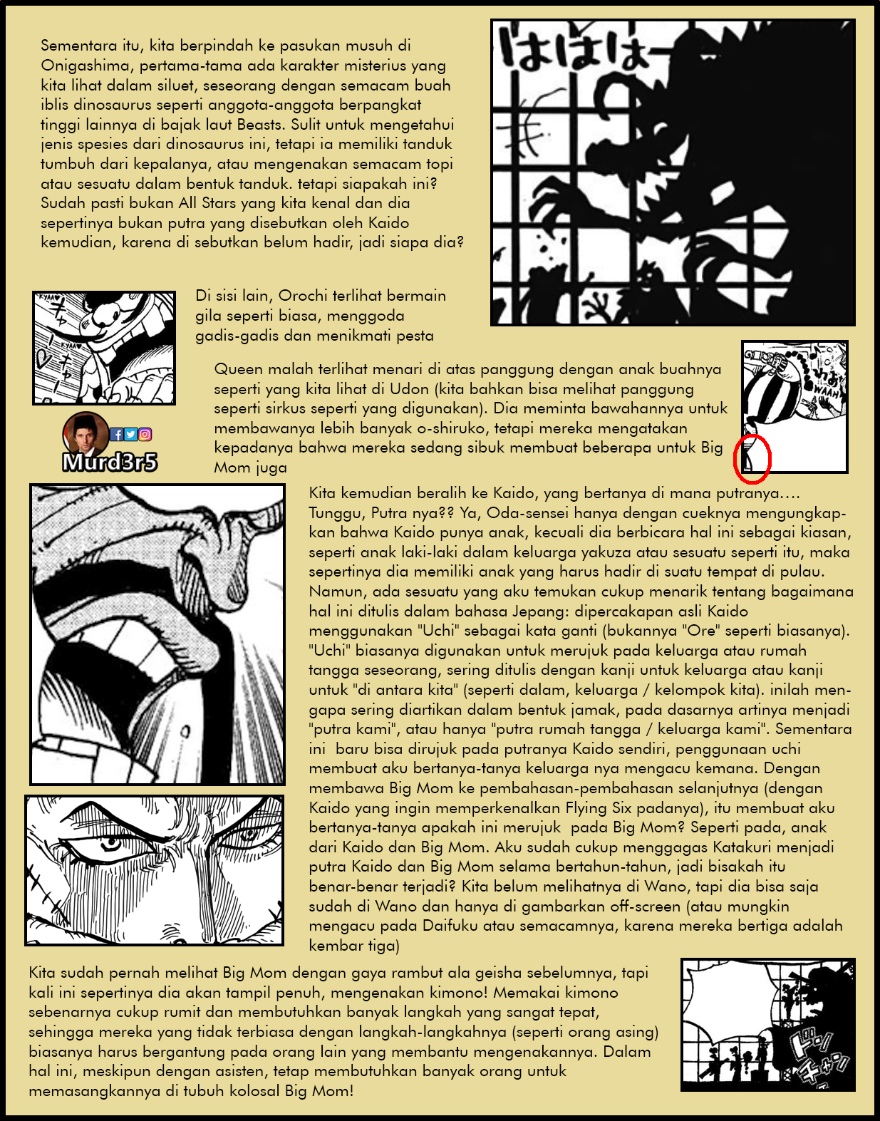 Kali ini Chapter Secret tidak banyak yang dibahas. Karena kita hanya di beritahukan semata bahwa Kaido mempunyai anak. Ya, mempunyai anak!!! Lantas apa maknanya?