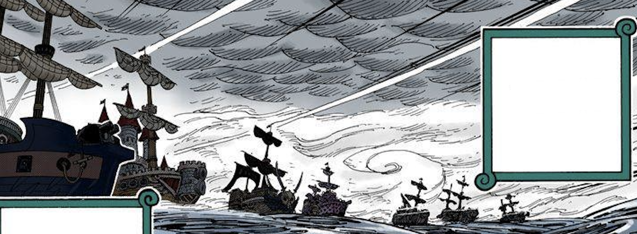 Berikut adalah panel ketika kapal muncul pre-timeskip di manga: