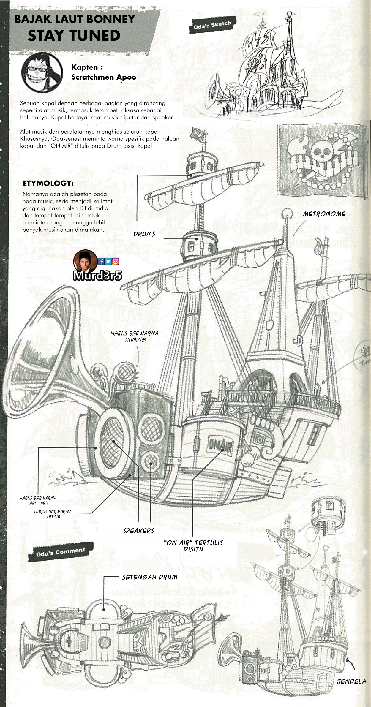 Diterjemahkan kedalam Bahasa Inggris oleh Artur, yang bisa kalian lihat postingannya disini: Supernova Official Ships. Terima kasih juga untuk @EtenBoby karena membantu Artur menguraikan beberapa catatan dari Oda-sensei.