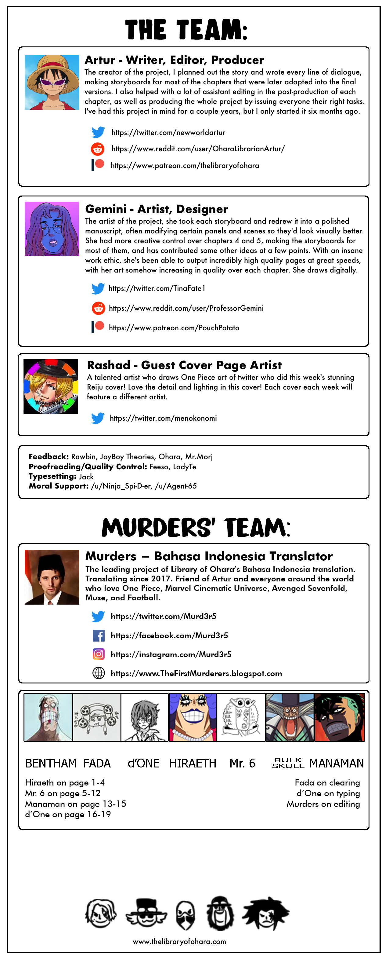 Berikut ini adalah karya penggemar nirlaba yang didasarkan pada One Piece Eiichiro Oda. Maksud dari proyek ini bukan untuk mengganti manga asli atau bersaing dengannya. Ini hanyalah sebuah karya penuh semangat dan penghargaan untuk One Piece yang dibuat untuk tujuan kesenangan semata. Enjoy!