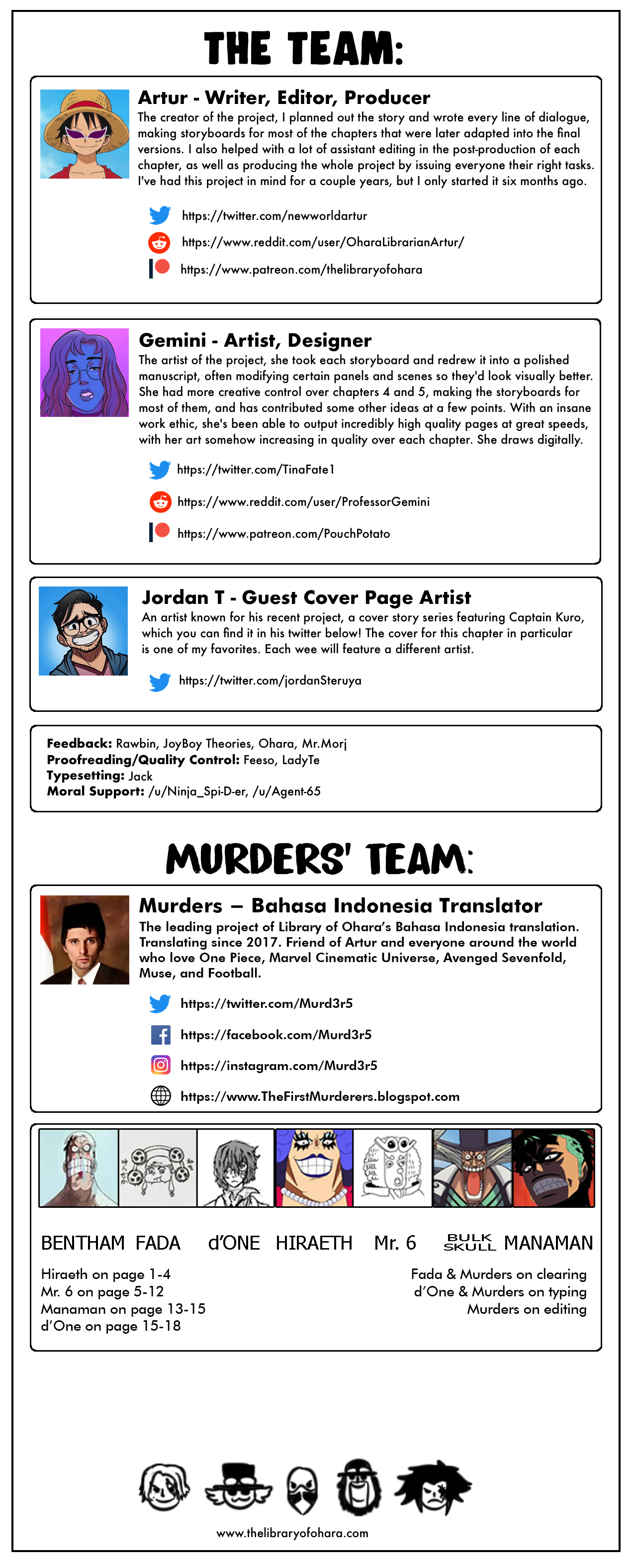 Berikut ini adalah karya penggemar nirlaba yang didasarkan pada One Piece Eiichiro Oda. Maksud dari proyek ini bukan untuk mengganti manga asli atau bersaing dengannya. Ini hanyalah sebuah karya penuh semangat dan penghargaan untuk One Piece yang dibuat untuk tujuan kesenangan semata. Nikmatilah!