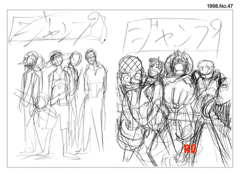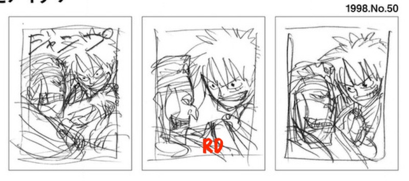 Early sketch of the core trio shows that Oda migth’ve intended Zoro to have sunglasses as part of his design: