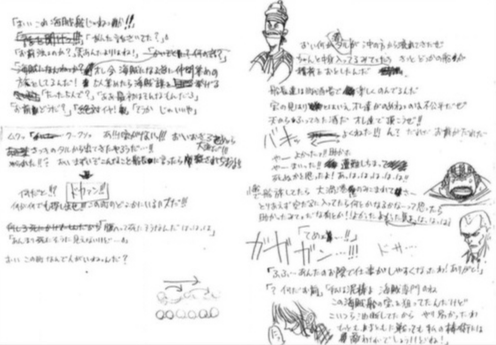 This fact isn’t new but somehow very unknown, but Nami was originally meant to be the first Straw Hat to join, similar to Silk/Ann in the Romance Dawn pilots. Chapter 1 centered around meeting Nami and fighting Morgan, but Oda instead made Luffy’s flashback the whole chapter. This Magazine does however elaborate on some details, such as that Morgan originally had cannon that could destroy several houses (later repurposed into the Buggy Ball) and that Luffy’s ambition was much simpler, simply wanting to become a pirate he was proud of, not the king.