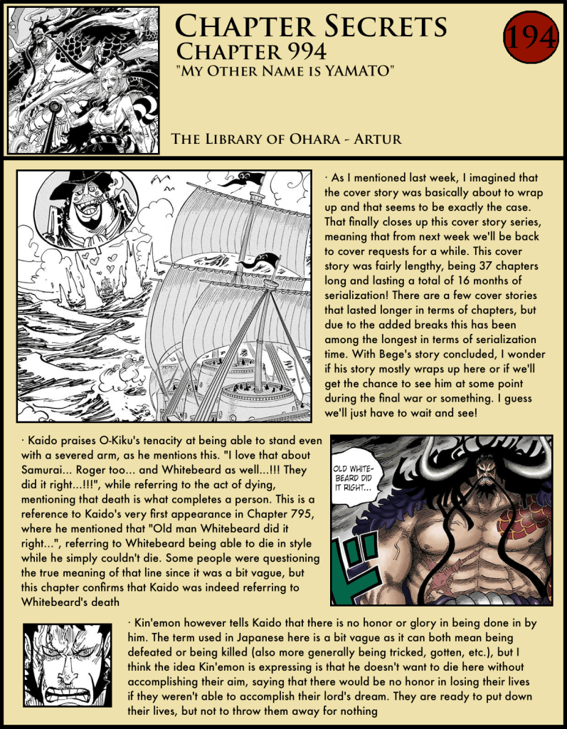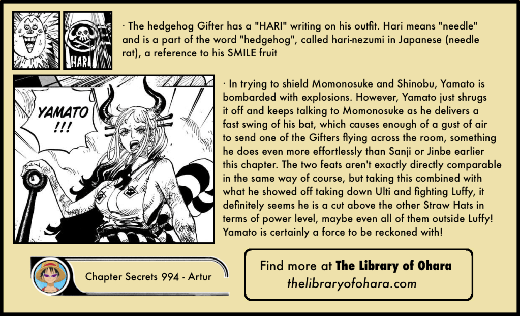I did want to make note of the point you made on Yamato taking out a gifter and comparing it to how Sanji and Jinbe took out headliners.