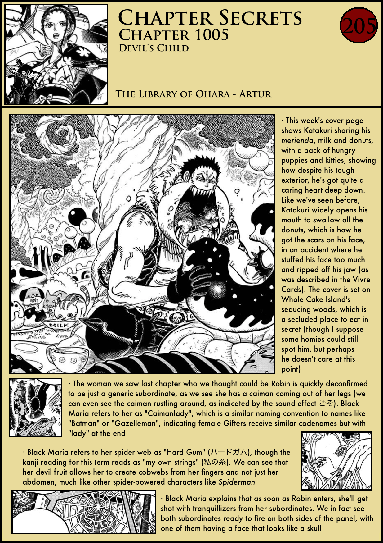 Although chapter name definitely refer to Robin, Katakuri in cover page also can be refer to devil child.