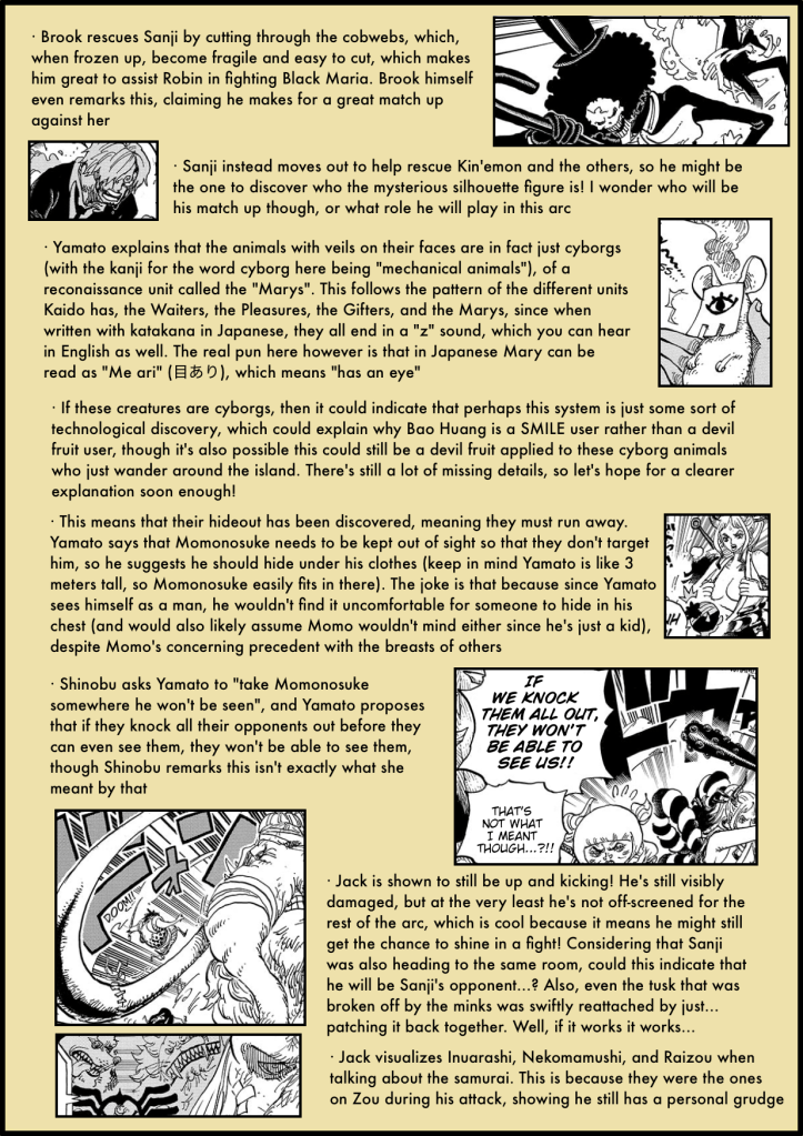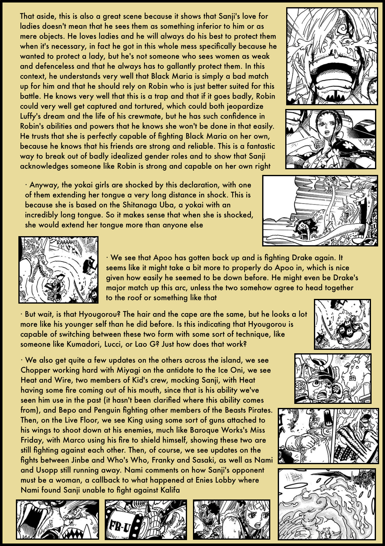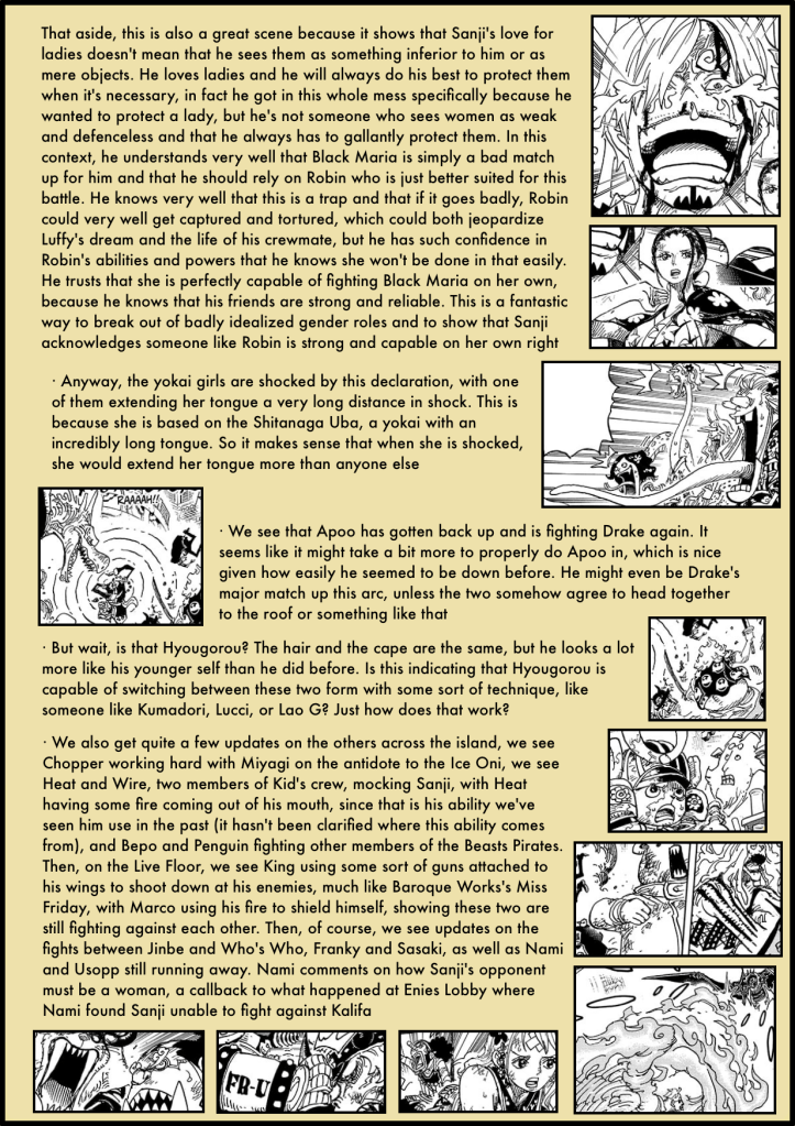 This chapter just keeps solidifying why Onigashima is one of the best arcs in ages for me. It gives so much spotlight to not just someone like Luffy, but even every single one of the Straw Hats! We’ll be exploring quite a bit of that today, so let’s get started!