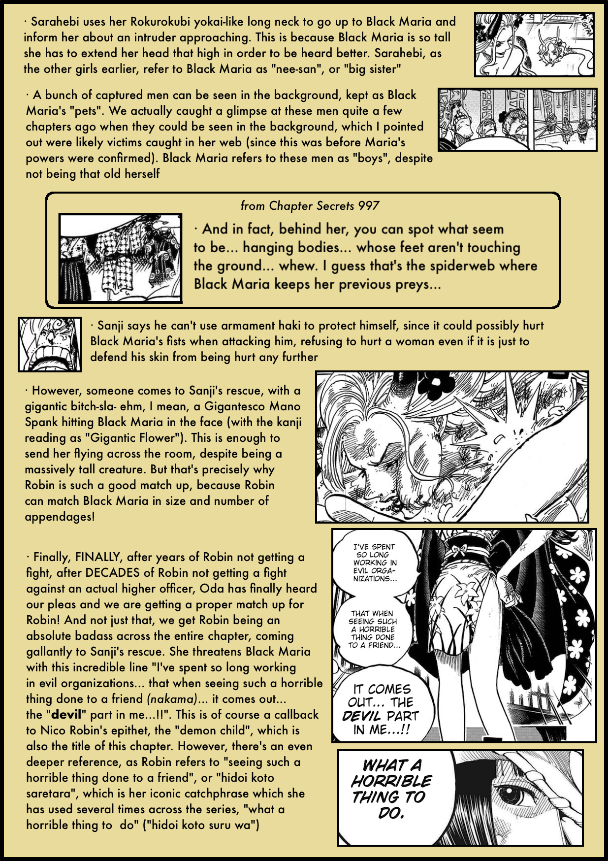 Also all the tobi roppo might be using atleast armament haki i guess. We have to see if Maria can use it as well and if she can, how robin fights against her.