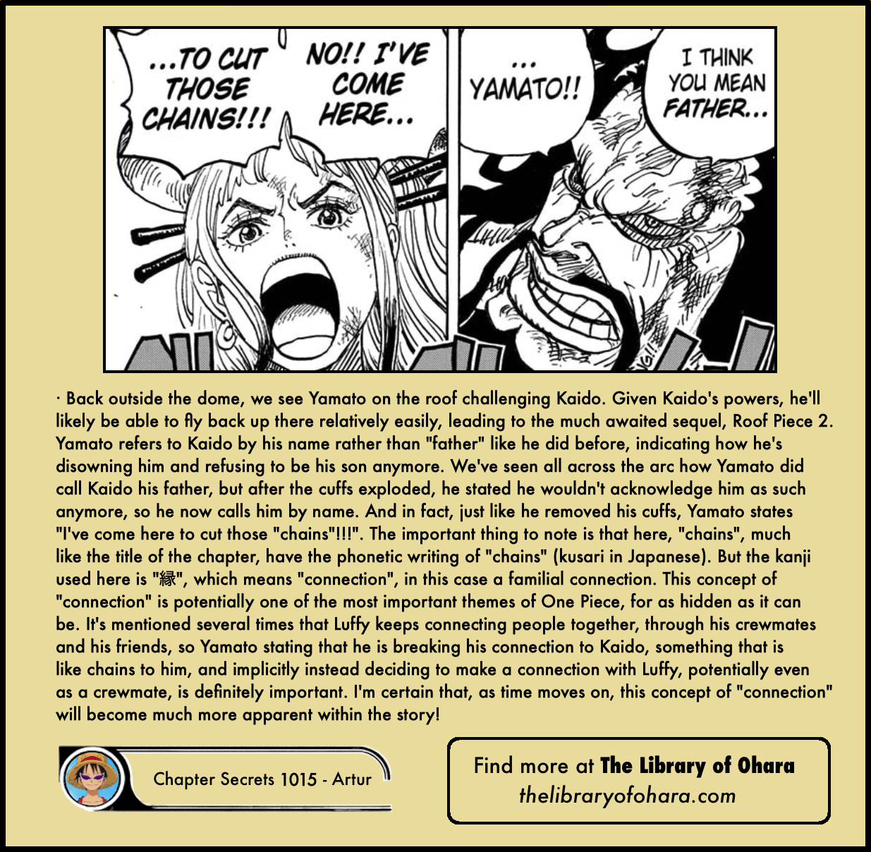 I’m really stoked for Yamato vs Kaido, I think he’ll be able to do some damage, especially with that transformation hinted at with the teeth before Franky showed up.
