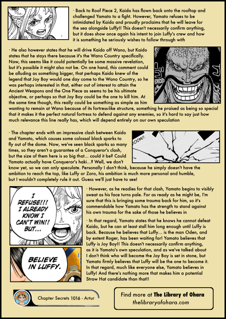 Really just want to see Yamato fight Kaido, and whatever transformation he was hiding with those teeth earlier..