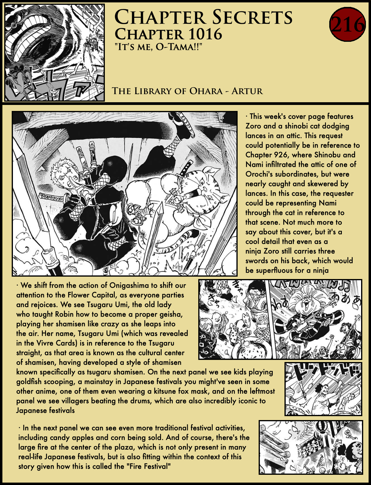 I actually thought the cover page was a reference to when Zoro asked Raizo to hide in the ceiling and get stabbed by a spear (his idea of being a ninja lmao)