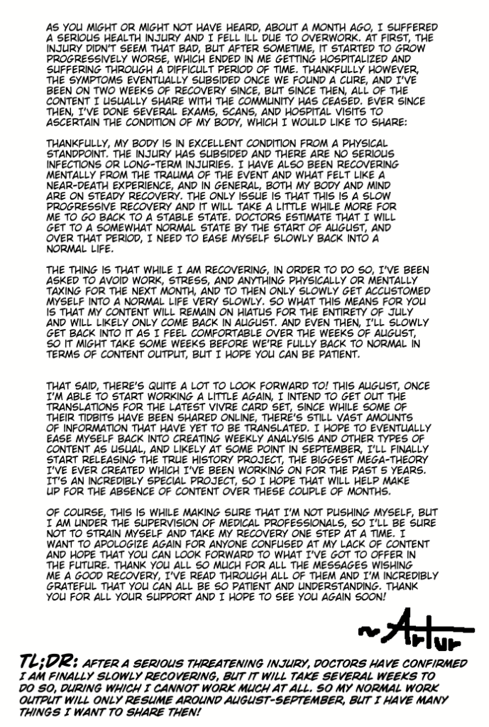 Like everyone is saying, take your time mate! I don’t even mind a 2-year time skip, but know, you’re sorely missed! Best of luck and see you soon! 🙂