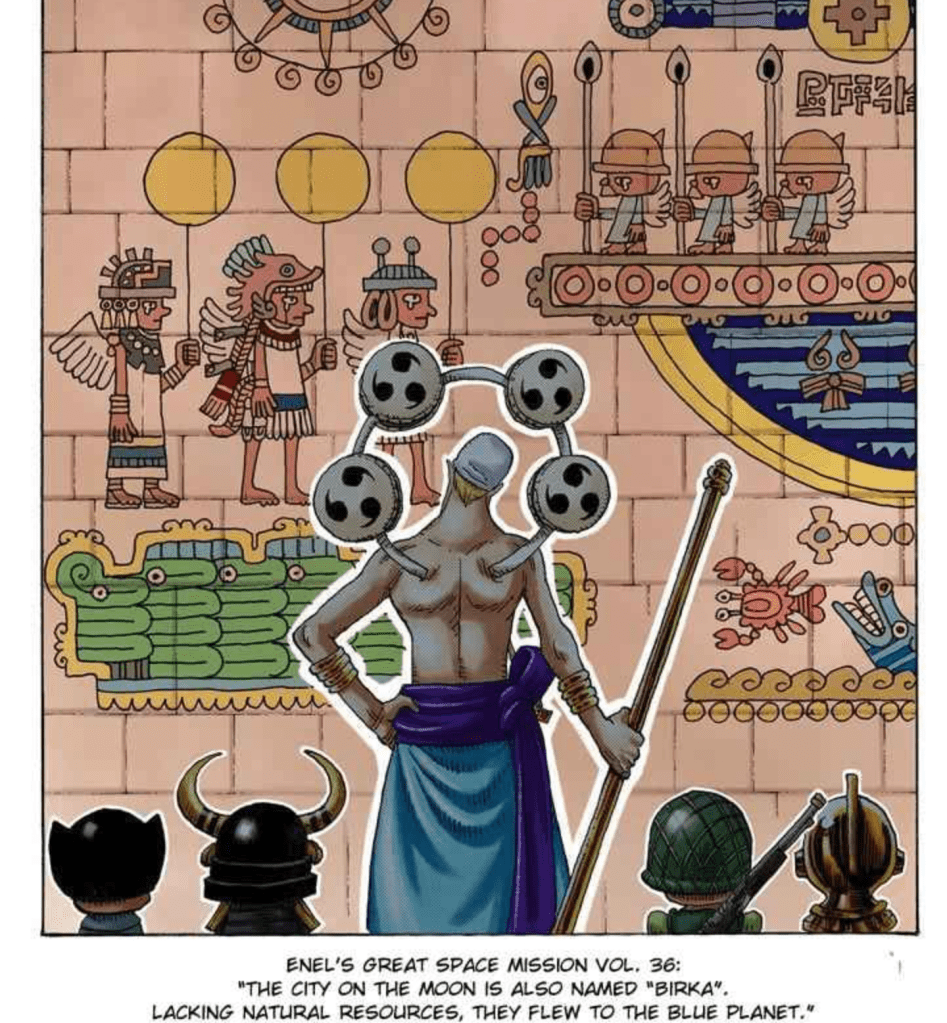 As we saw in Enel’s cover story, on the Moon they already had quite advanced technology, even if it wasn’t on the same level as what the ancient kingdom would achieve a few centuries later, having developed electricity which powered the automata “karakuri dolls” that aided this civilization. However, there was one fundamental flaw that they ran into, which is that they ran out of resources. This is exactly what Vegapunk is talking about, they didn’t have a sustainable resource that could easily power all of that technology, so without resources they could not keep this technology running for such a long time. Which forced them to return to the planet below and abandon the moon in order to search for resources there. So in other words this was at a time when the people of the Moon did not yet figure out the key to be able to attain infinite resources, but later, their successors, which would become allies and part of the immense kingdom, would be able to develop the technology to access energy from anywhere in the world.