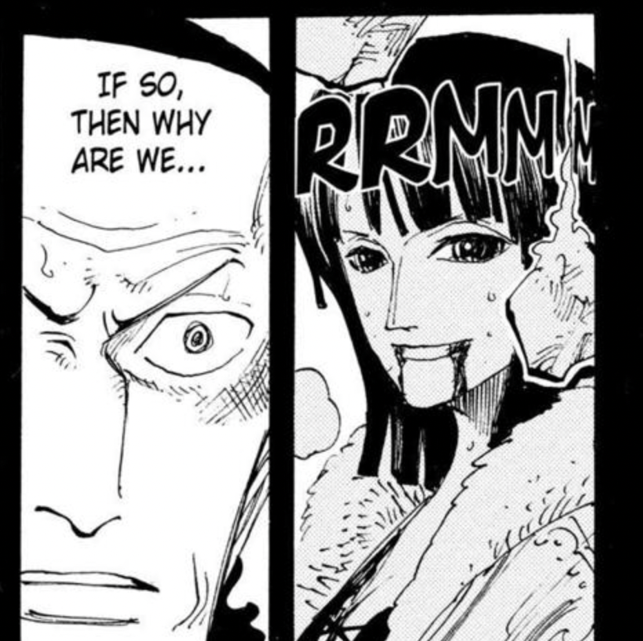 This led King Cobra to finally arouse his suspicion regarding the role of the Nefertari Clan and what happened to Queen Lily. And this finally frames so many things together. It explains why Lily was holding a picture of Vivi in Chapter 908. Because not only is Vivi in part her descendant, but she also bears a striking resemblance to her. From the faint silhouette we see of Lily, not only does she perfectly match that of Imu, but she also looks a lot like Vivi. And considering what we’ve seen with the likes of Poseidon or Joyboy finally reappearing upon the world, then I wonder if Imu sees Vivi resembling her so much as some twist of fate. But regardless, she thought the Nefertari too dangerous with what they have discovered, which is why she had King Cobra killed and tried to capture Vivi, but she managed to escape as she got on Morgans’s ship after heading down to the Red Port to get Garp.
