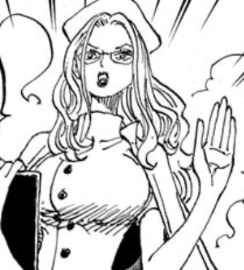 The one who takes care of looking after Bonney, or rather looking that she doesn’t escape, is Cipher Pol 8 agent Alpha. Now you may be confused and think… isn’t this just Kalifa? She looks identical to her and is a Cipher Pol agent, but she can’t be her, because Kalifa would at this time be on an undercover mission in Water 7 as a secretary of Galley-La, and was part of CP9 anyway. So the obvious answer is that this is most likely Kalifa’s twin sister, which makes sense as both of their names are very similar, Kalifa and Alpha, a pattern that is even more obvious when written in Japanese. Though there’s also the possibility that she could be a clone like Stussy, but it’s hard to say, as Laskey, Kalifa’s father, could have easily have twin daughters that he both recruited into the Cipher Pol after himself.