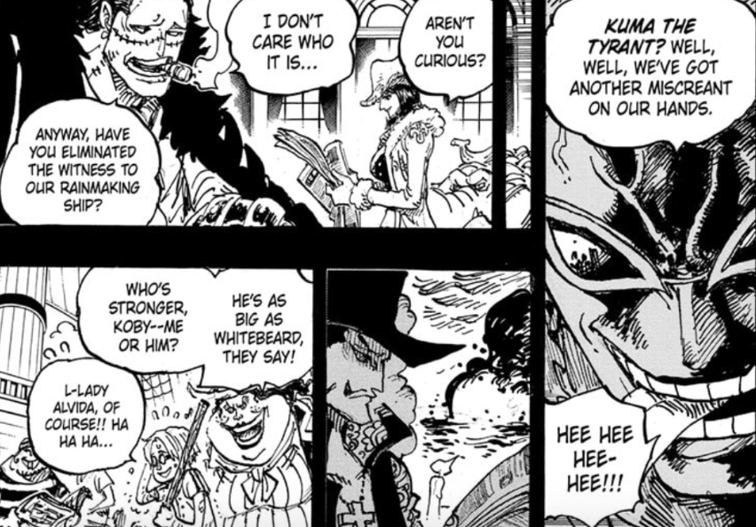 And it’s not limited at just that. There’s also the fact that as of Thriller Bark, Kuma was aware that Ace was Luffy’s brother, a fact that was otherwise unknown to anyone else but someone like Garp and any Government higher ups, but would they really have told him? How did he come to know all this stuff, and is it connected with his time in Luffy’s village?