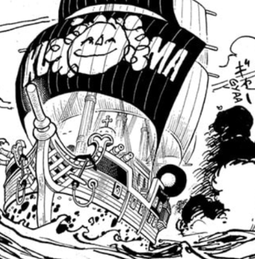 We conclude by switching back to Kuma, who is writing a letter to Bonney, one he seemingly delivers through the News Coo system. He is hunting down pirates on behalf of the Government, having wiped out a pirate ship in this panel, also claiming to be hunted down by his fame. We finally get a look at his ship, which is modeled after him, with a hull in the pattern of his hat and two massive bear ears. The front is in a shape similar to a cross, and the building on the ship appears to be modeled after his church. On the sail itself, and likely the flag, is the writing “Kuma” with a drawing of his face. This drawing was actually the drawing that Bonney made of Kuma, making this symbol an incredibly heartfelt detail.