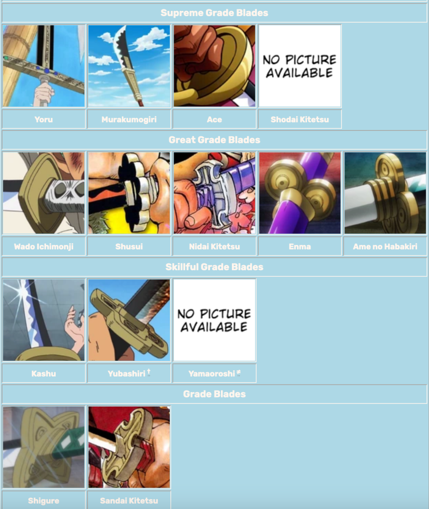 To put it into perspective, the strongest swords in the One Piece world are classified into the Meito grading system, which is a system of grading swords, inspired by a real life Meito metric in Japan, that classifies the greatest blades in the World. Beyond the Wazamono, or “Sharpened Blades” of which there are an unspecified amount, the greatest swords can be further classified into three categories: there are 50 Ryo-Wazamono, or “Well-Sharpened Blades”, 21 O-Wazamono, or “Greatly-Sharpened Blades”, and 12 Saijo O-Wazamono, the “Best-Sharpened Blades”. Zoro’s Sandai Kitetsu does not qualify for these three higher grades, instead being a simpler “Wazamono” generic grade, but still considered a Meito blade. On the other hand, the Nidai Kitetsu is considered part of the 21 O-Wazamono, but the most special is that the Shodai Kitetsu is in the top 12 Saijo O Wazamono. This puts it on the same level as Mihawk’s Yoru, Whitebeard’s Murakumogiri, and Roger’s Ace, the best swords ever made. However keep in mind, if a blade is further strengthened by becoming a Kokuto, or a black blade, then it’s possible that it can rise in Meito grade.