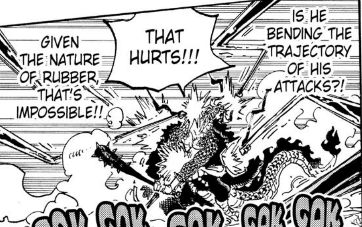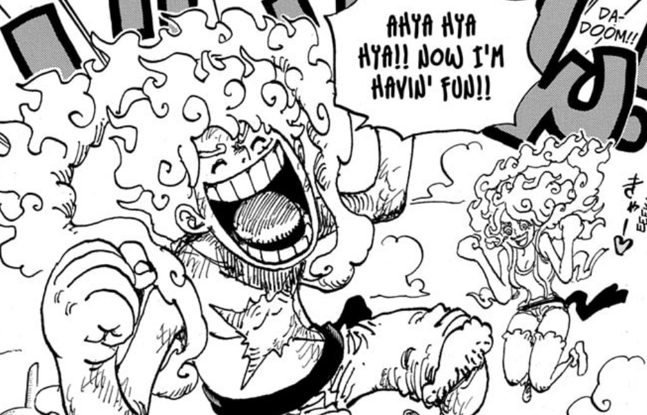 This is a good opportunity to bring up the fact that it’s been suggested Gear 4th was seemingly an already awakened form of Luffy’s fruit, though not awakened at its full potential. For starters, it had the cloud scarf that is iconic to awakened Zoan users, but it also transforms Luffy’s body just like a Zoan awakening does. Even Kaidou remarked that the way that Luffy used Python during Gear 4th was unlike how his fruit otherwise worked, as it went beyond the properties of rubber by extending itself infinitely. Instead something like python better matches Gear 5th, where Luffy’s body is instead able to stretch with a lot more freedom. It seems like Gear 4th was only a partial stage of awakening, as Luffy hadn’t quite reached his full Nika transformation where he becomes much more cartoonish and much freer, but at the very least seeing him use a move like Tankman this chapter once again suggests that Gear 4th and Gear 5th are more intrinsically connected than people thought.