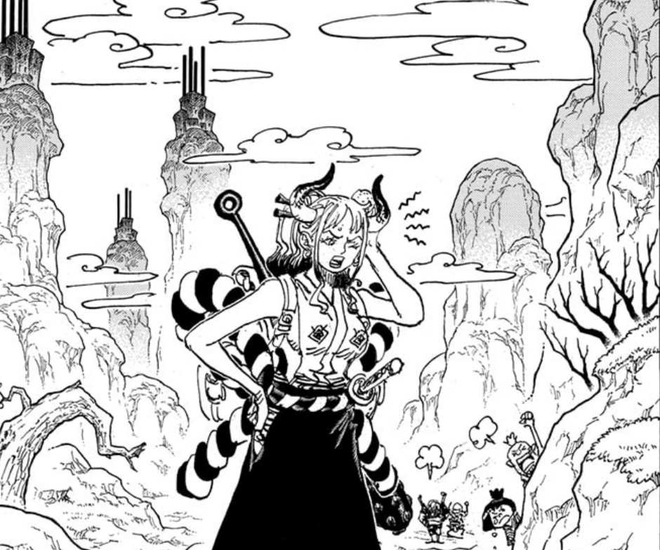 On the cover, we get to see the region of Kibi, which is one of the few regions of Wano we’ve barely got to see much of in the original story! Kibi is based on the Chuugoku central region of Japan, and is named after the food of the same name. Unfortunately though, most of Kibi has been turned into a wasteland, and factories still loom in the background as a reminder of its darker days. Yamato, who is crossing through Kibi, is getting harassed by children who held a grudge against Kaidou, so it’s going to be interesting to see how Yamato is able to turn that around.