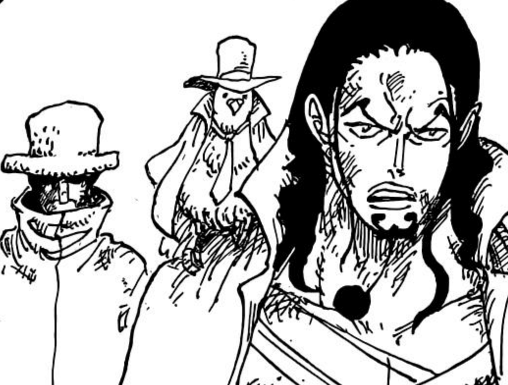 One of the Cipher Pol agents questions Lucci about Stussy, and on the back of his jacket you can see the writing “CP”, standing for “Cipher Pol”. Lucci claims that they have killed Stussy, but I think it’s honestly more likely that she did get away and Lucci is just trying to cover up. I do wonder though if Lucci is unaware that Kaku let Stussy get away and assumed she just escaped, or if he is actually willing to cover up for her here as well. If anything, I think it’s likely that Kaku told Lucci that Stussy died of her wounds that he inflicted on her, and Lucci believed him.