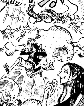 As the party ensues, we can see the giants are dancing to the tune of Nika and Luffy, likely none the wiser, dances along with them with the same pose of Nika. Meanwhile, in a sweet moment, Bonney comments to Kuma how they can finally see the sea’s horizon together. This is because the two had promised that they would travel the world together at some point in the future, but in reality the two were never able to make a trip aside from Kuma taking Bonney to Egghead, something that was likely done in big part through his powers, and even then Bonney was stuck inside a box the whole time. So this is the first time that Kuma and Bonney are finally having a proper trip together as father and daughter, with even the broken Kuma cracking a smile.