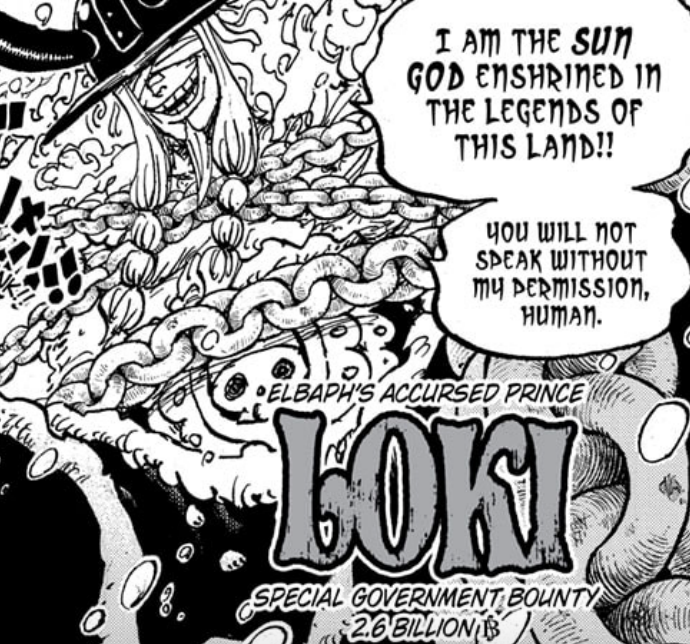 Loki claims that he is the Sun God which has been passed down in this country for generations, which reinforces my belief from last chapter that Loki’s fruit literally has to do with being the Sun God. After all he claims it is something that has been passed down across the generations, just like the fruit his father Harold had, so it just would make sense if his fruit makes him a sun god of sorts. But since Luffy has the Nika fruit, it again makes us wonder just what type of Sun God.