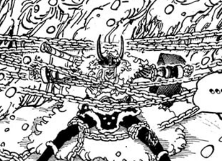 He explains that he has been chained for 6 years, so since 1518. The only two majorly relevant plot points from this year are Kuma’s One-Man Revolution, which isn’t really relevant here, but a far more relevant point, which is Shanks becoming one of the Four Emperors. And given Loki’s latter mention of Shanks, surely there’s a connection here. Given how he’s been chained here for so long though, I wonder how he has been fed this whole time, maybe with someone feeding him or maybe tying into his powers.