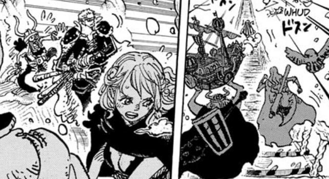 We then see that Road, followed by Gerd and Goldberg, which they call “Female Warrior” and “Chubby”, are chasing after the Straw Hats. Road might be mad, but given how Goldberg is carrying the Sunny, I do think that they are trying to be nice and this is all just a misunderstanding, as Gerd and Goldberg at least would side with the Straw Hats.