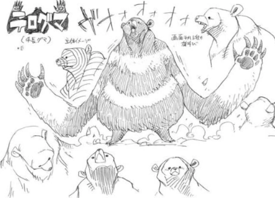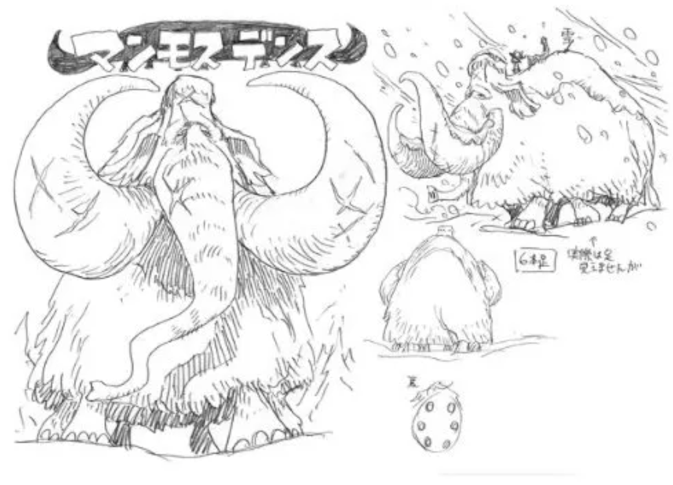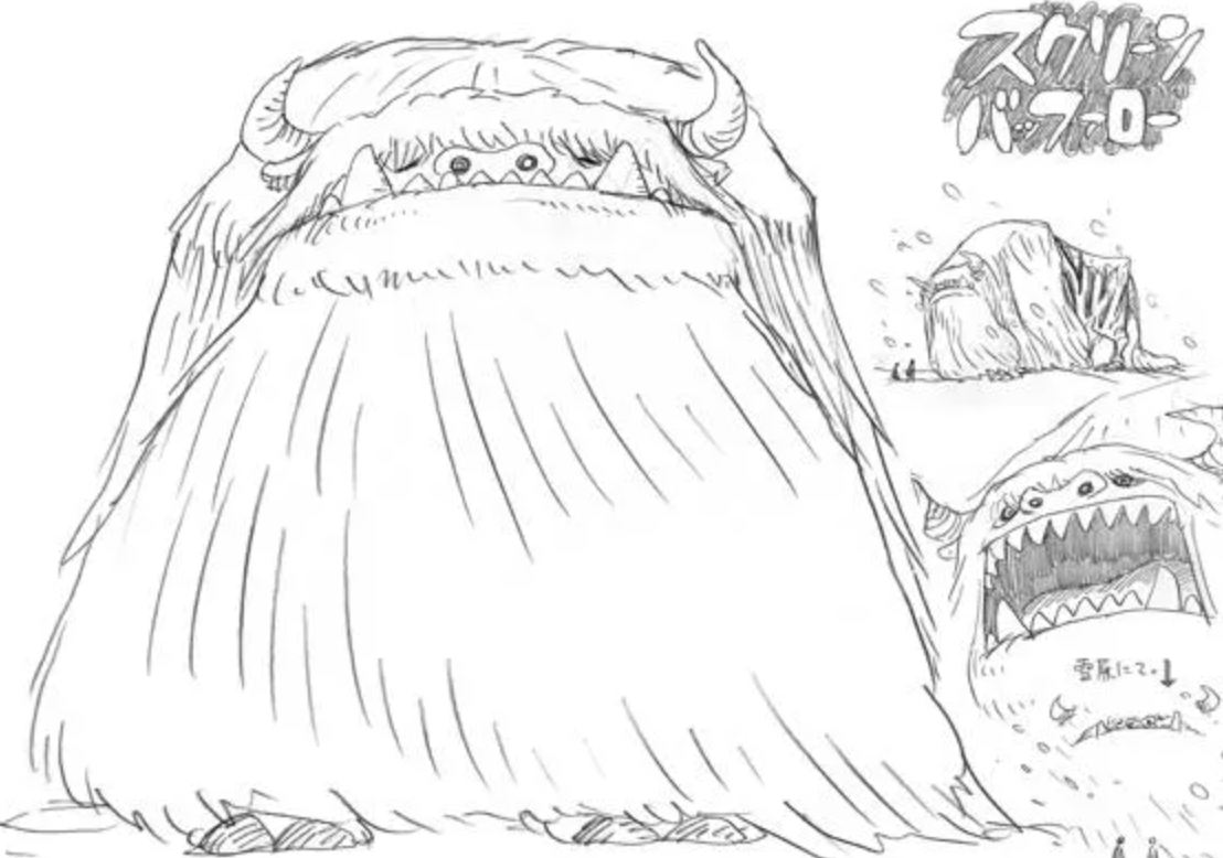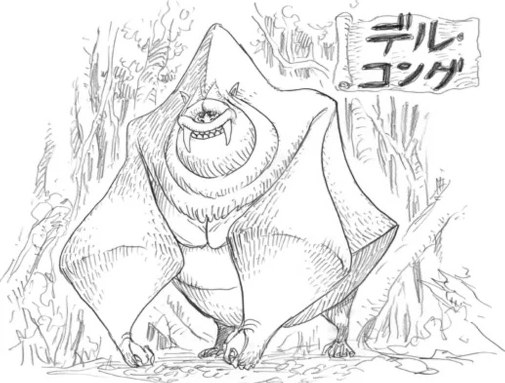 This one for example is known as the Del Kong, a giant gorilla with spiky proportions. The mammoth also looks similar to the Mammoth Dense, another creature from Strong World. And finally the snake is also from Strong World, being the Dasoku, which the evolved version in Strong World looked like a similar snake but with several feet more like a centipede. The bear is a Teroguma, a bear with really long arms, and even the yeti-like creature we saw before is actually a Screen Buffalo, another creature from Strong World.