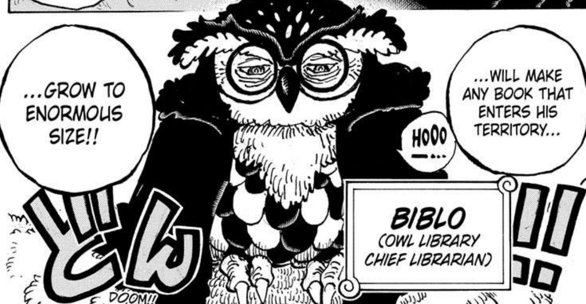 Saul introduces us to the “Lord” of the Owl Library, whose formal position is the Library Director. This is the owl Biblo, who oversees the library and causes all the books within it to grow giant. Just as we had guessed last week, this owl is in fact the fruit user that causes the books to grow large: as Vegapunk Lilith explains, Biblo has eaten the Iku Iku no Mi, making it an “ikusei fukurou”, or a “growing owl”. As she clearly explains, the word “Iku” is derived from “Ikusei”, or “to grow”, which is particularly attributed to someone who grows crops, or even grows animals or children. As such, the fruit would most naturally translate into the “Grow Grow Fruit”, allowing this growing owl to grow any inorganic objects that come within its territory, a power befitting of the island of giants.