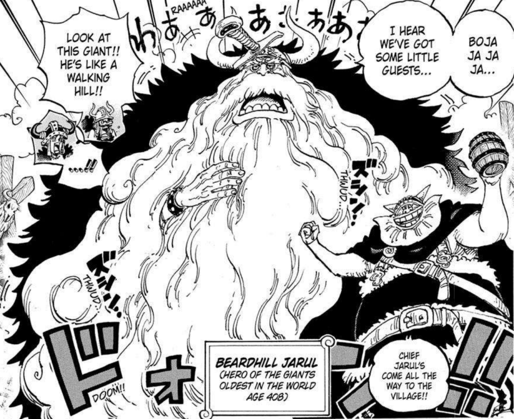 As his description explains, he holds the title of “the oldest person in the world”, a fact we were already aware of, given how he was 345 in Big Mom’s flashback 63 years ago, that now makes 408 years old. To be clear, he isn’t the oldest creature in the world. The oldest creature, that we know of at least, is Zunesha, whose age was stated to be over 1000 years old in the Vivre Cards. But if we’re technical, Jarul isn’t even the oldest person, as of course, we have the figure of King Imu, who we’ve been told has likely been alive ever since the Void Century. Of course, we don’t know how human Imu really is, but even the Gorosei as far as we know are humans who have been conferred devil powers by Imu, and Saturn alone was at least over 200 years old, so it makes you wonder just how old some of the rest are, as I feel at least one of them must’ve been over 400 years old.