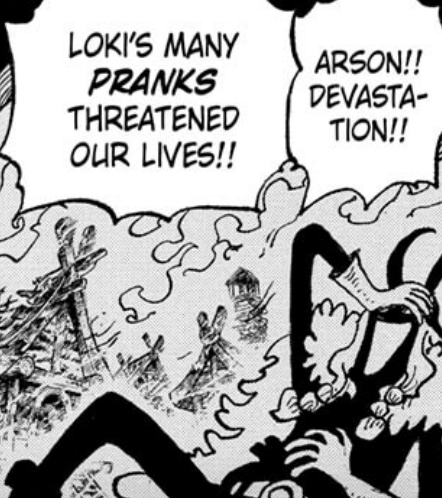 I proposed since his introduction that Loki’s claim about being the Sun God may not just be wanting to be like the people of Elbaph do, but him actually having become the Sun God through his fruit, perhaps there being some other interpretation of Nika. And now it sounds like it could really be the case… so what if Loki actually did eat the Nika fruit… but a version of Nika that was based on the myth that he’s a destroyer rather than a savior, thus embodying the Warrior of Destruction (hakai no senshi) compared to Luffy being the Warrior of Liberation (kaihou no senshi). This might even explain how Loki literally set ablaze the villages of Elbaph with sun-like fire, all while laughing to himself just like Nika did.