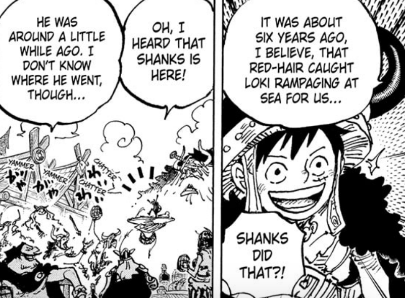 This also likely confirms what we had assumed that Shanks’s rise to becoming a Yonko 6 years ago may have been due to him defeating the feared Loki who even the Government was growing concerned about, giving him such a high bounty, as the times coincide. Just like how his defeat of the Music Devil King Tot Musica and the destruction of Elegia gained him his first bounty over a billion, his defeat of Loki likely brought him even more recognition. But it all adds more mystery to Loki’s claim that Shanks was a coward. Was it for sparing his life and giving him back or is there more to it?