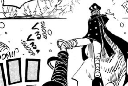 Gunko continues to attack Loki, using what is revealed to be called the “Aro Aro no Mi”, or “Arrow Arrow Fruit”, making her a “Yajirushi Ningen”, or “Arrow Human/Arrowwoman”. This deconfirms our idea that this was some sort of mythical Zoan or mythical devil relating to a creature like the ittanmomen, showing that it’s just a normal fruit with no connection to Imu… or is it? Because while it seems to be just a Paramecia, it does still seem to have a connection to Imu. After all, we see that where Gunko steps, black flames appear, which are identical to the black flames generated when the Gorosei appear through the summoning circles, something that connects them to Imu. And from among the black flames, the arrows come out, which suggests some direct connection to Imu, especially since we’ve seen Imu using these very powers. So while this could be a Paramecia, it does still seem to have some link to Imu.