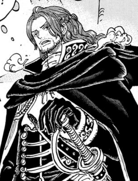 However, it turns out that this isn’t Shonks, but rather Figarland Shamrock!! Finally, the big theory of Shanks’s twin has been confirmed, as Shamrock is confirmed to be the son of the Gorosei Figarland Garling, and thus meaning that Shanks has to be his brother as well as Garling’s son. We were already told during Film RED Shanks was a Figarland, and back during God Valley in Chapter 1086, Garling did make the exclamation of “watch me, my children”, likely referring to both of his babies, but one of them would end up by accident in Roger’s hands, being raised by him as his adoptive father, while the other would remain in Garling’s grasp, becoming a God Knight. It turns out that indeed the silhouette we saw of the God Knights from Dragon was someone who looked like Shanks, it turns out the mysterious shadow we saw in the spread at the end of Vegapunk’s message was likely Shamrock, and it turns out that the guy who spoke to the Gorosei was likely Shamrock as well, finally clearing Shanks from the rat allegations after all these years.