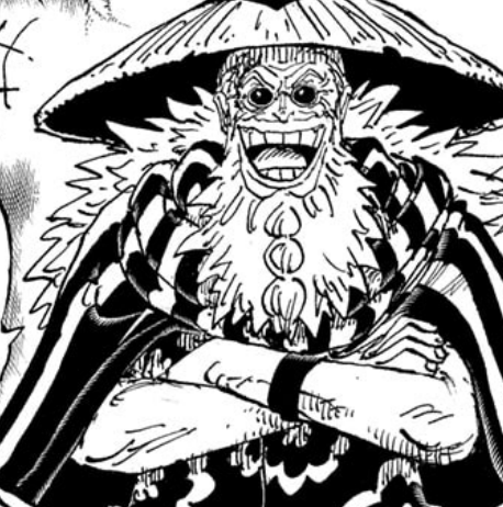 Eitherway, Gaban really needs no introductions, as he was the third most important man on the Pirate King’s crew. He first appeared in Chapter 19 during Buggy’s flashback, already seen wielding his iconic axes (though one fo them was obscured, making fans wonder for years what kind of weapon it was only to turn out to be another axe), reappearing in Chapter 0 and then finally Oden’s flashback. He was actually only originally named in a databook but was eventually named by Roger in Chapter 966. He fights with two axes, as the myth of how he came to be known as the “mountain-eater” within this chapter goes, and he also was seen charting out a map, suggesting he may have been the navigator of the Roger Pirates (which explains why exploring is his hobby). If Rayleigh was like Roger’s Zoro, Gaban was like Roger’s Nami, though in strength I’m sure you could compare him to one of the others as well, particularly with Luffy comparing him to Sanji.